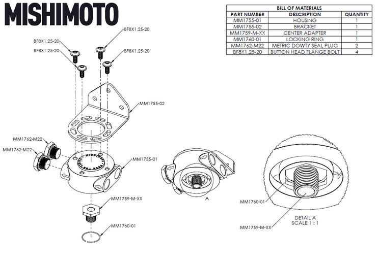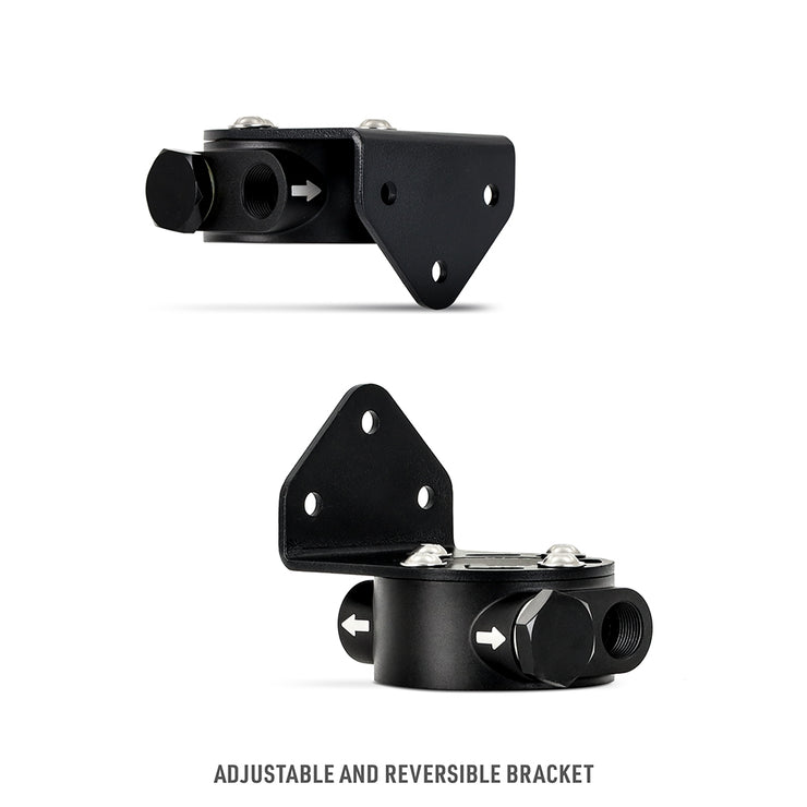 Mishimoto’s Remote Oil Filter Mount utilizes Dowty seal connections, ensuring reliable leak-free operation. Our high-quality stainless-steel filter adapter is available in multiple thread sizes to fit common filter sizes. Our engineers designed an extremely robust 4mm-thick steel mounting bracket with a uniquely adjustable mounting surface to provide substantial versatility. We’ve also included two M22 X 1.5 plugs for capping any unused ports on the filter mount. Finally, this Mishimoto Remote Oil Filter Mount features a durable anodized black finish and includes our signature Mishimoto Lifetime Warranty.