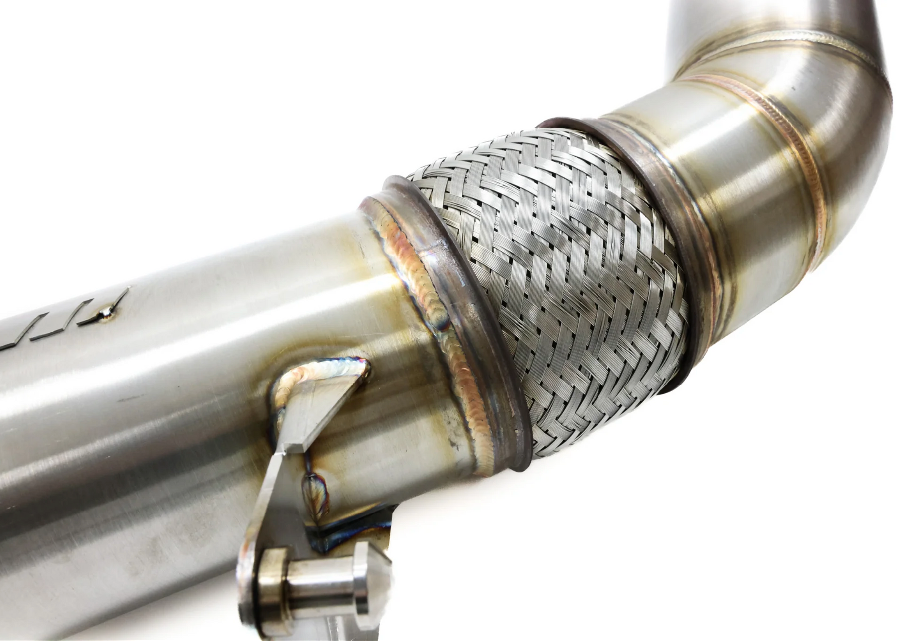 Featuring a cutout near the upper section, this downpipe ensures proper clearance around the sensitive ABS module. This design eliminates the risk of contact or heat-related damage to critical brake components, ensuring both performance and reliability without compromising performance.