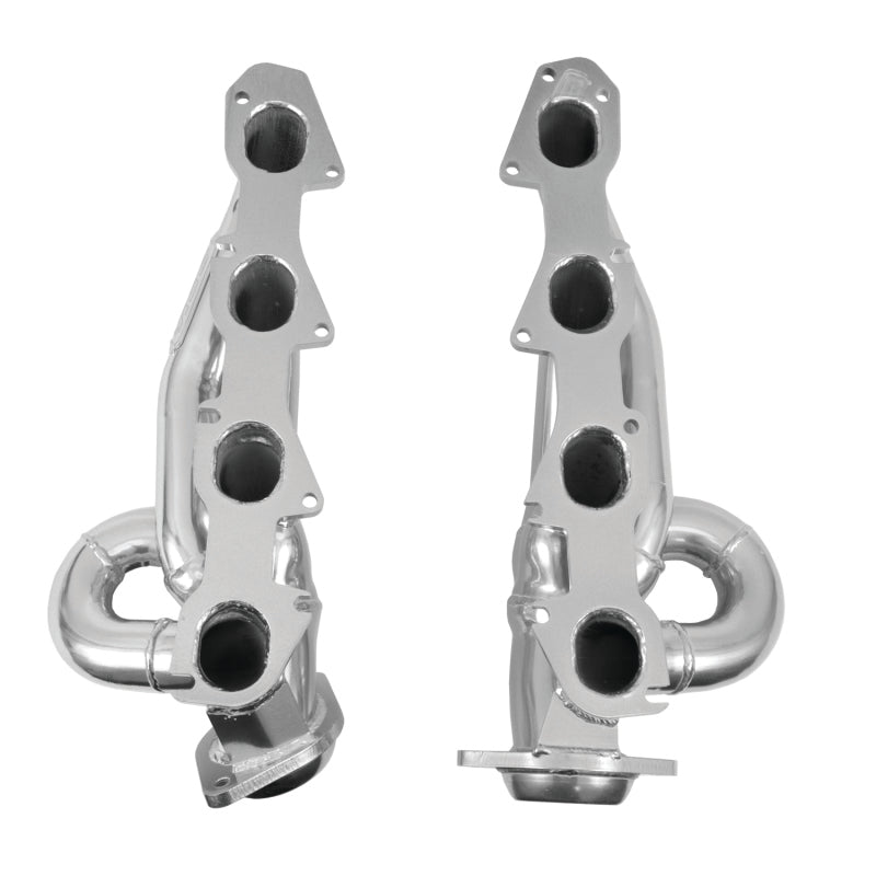 These BBK Performance shorty tuned Length exhaust Headers are designed and constructed as direct fit replacements for all 09-18 Dodge Ram truck 5.7L 1500 ONLY applications. Each header is manufactured with 1-3/4 in. CNC mandrel bent tubing that offers unrestricted exhaust flow for increased horsepower and torque over factory OEM manifolds. BBK tuned Length headers offer improved scavenging waves for better combustion, which leads to improved performance and fuel economy over stock or equal Length headers. As with all BBK Performance exhaust headers they feature a 3/8 in. laser cut flange for additional strength and a guaranteed leak free fit. All headers are robotically and precision hand welded and then pressure tested to ensure years of reliability and performance in the real world. All BBK exhaust headers are available in a Titanium Ceramic or polished silver ceramic coated finish and include new exhaust header gaskets, header bolts and hardware to complete the installation. Note: They DO NOT FIT 2500, 3500 or MEGA CABS