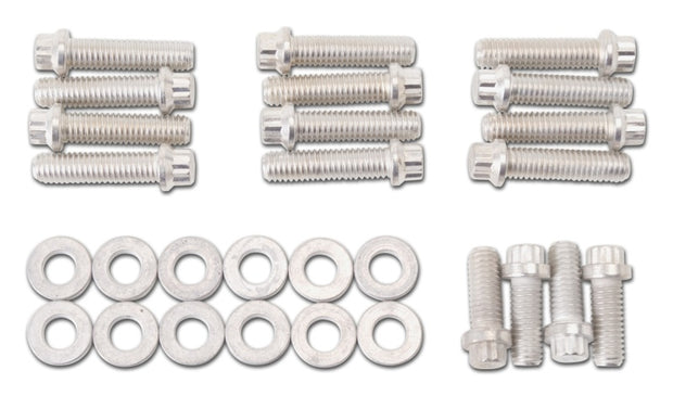 Edelbrock part #8509 Intake Bolt kit is designed specifically for Chevy 348/409 c.i.d. Edelbrock manifolds. This bolt kit features 12-point heads for easy wrench access. Features include cadmium finished steel bolt and hardened washers.