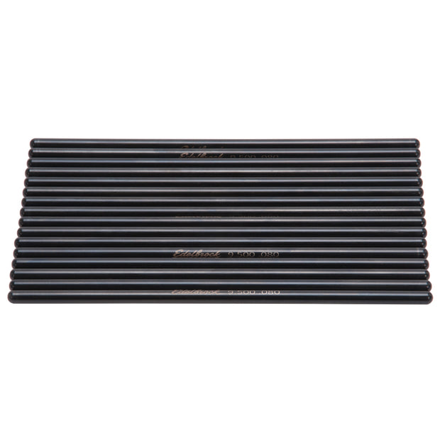 Edelbrock part #9633 Pushrods are designed for Ford 351M/400 V-8 engine applications. These one-piece pushrods are manufactured from high quality 4130 Chromoly steel tubing that has been surface hardened for maximum durability. They have precise formed wedged ends for a high quality fit with the cup seats. A black oxide finish is added for corrosion resistance. Pushrod Specifications: - Outside Diameter: 5/16" - Length: 9.500"