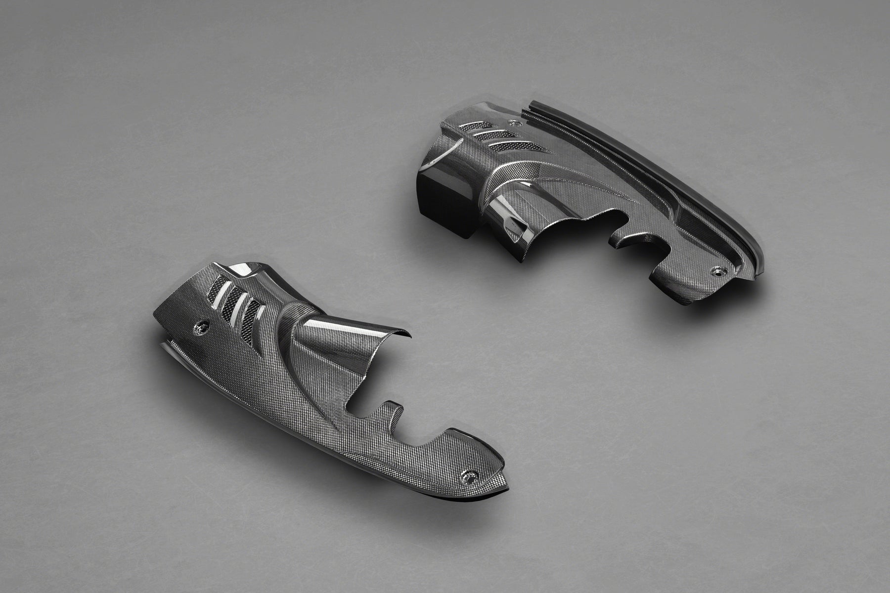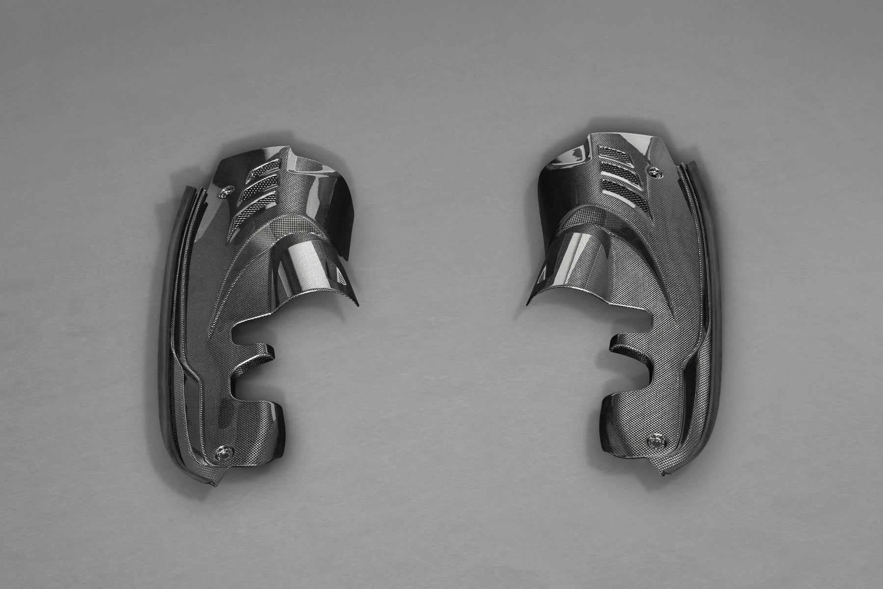 A set of motor compartment side covers for both the left and right side of the engine bay for the Ferrari 488 GTS and Pista (Spider). It Features Full carbon construction and a glossy finish.
