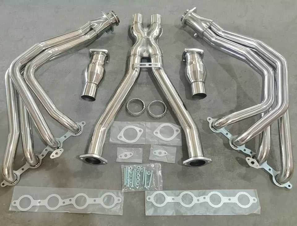 C5 Corvette Headers vs. Stock Exhaust Manifolds Upgrading from the factory cast-iron manifolds to long tube headers unlocks the true performance potential of the C5 Corvette. The stock manifolds were built for cost and emissions compliance, not airflow, so they restrict exhaust pulses and limit how freely the LS1/LS6 can breathe. Better engine breathing: Stock manifolds create turbulence and slow exhaust flow, while long tube headers give exhaust gases a smoother, more efficient path out of the engine. More responsive acceleration: Reduced back pressure lets the LS engine rev quicker and react instantly to throttle input. A deeper, performance-driven sound: Factory manifolds mute the Corvette’s natural V8 tone. Headers unleash a stronger, more aggressive exhaust note. Stronger performance potential: Ideal for stock or modified builds, long tube headers support future upgrades and create a solid foundation for adding power. Lower heat buildup: Improved flow helps reduce heat retention, keeping temperatures more stable during spirited driving.