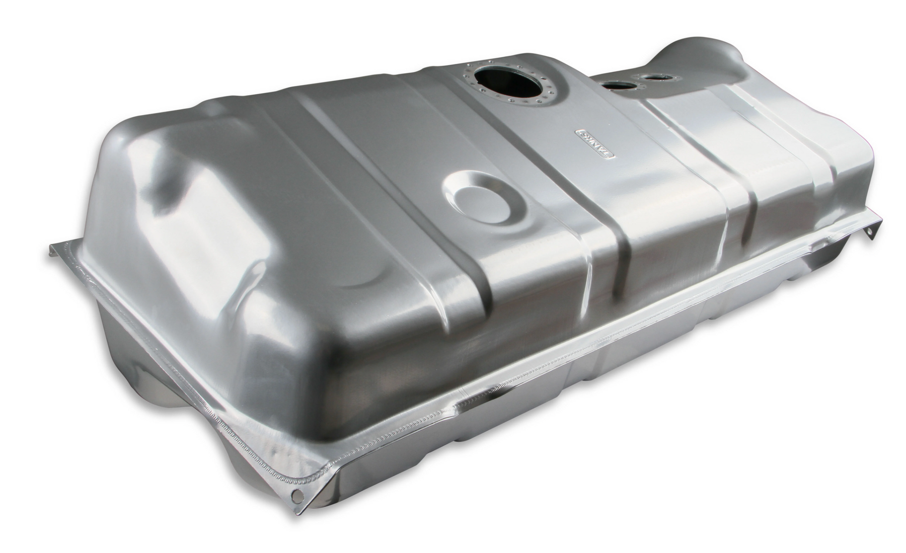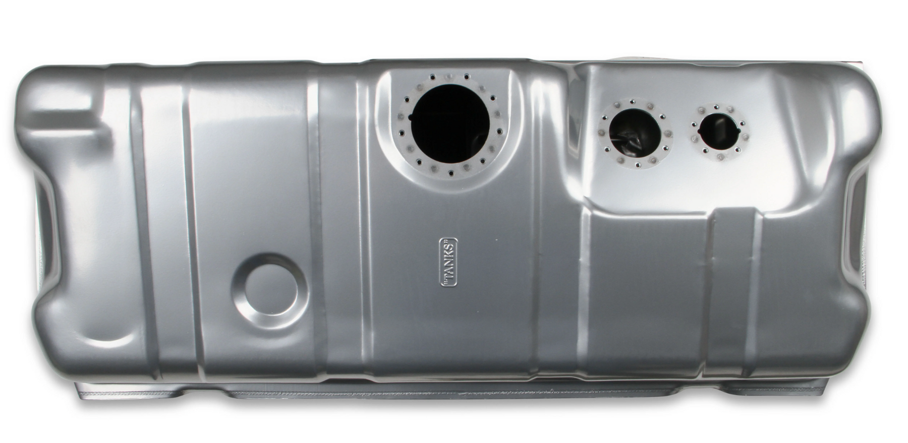 Holley and Sniper will help you to complete your EFI swap with our new EFI Conversion Fuel Tanks. Each tank is a direct fit for your application-no modifications necessary. The kit includes the tank, a 400 lph fuel pump, internal baffling and a fuel level sending unit. The tank is powder coated for corrosion resistance and great looks. These tank kits are a complete solution for your EFI project! ***Steel filler neck is not included. You must use your existing stock filler neck or purchase one through restoration suppliers. ***This kit includes a fuel gauge sender for use with FACTORY FUEL GAUGE and wiring. If you are using an aftermarket gauge, you will also need a sending unit for that gauge ohm range. Supports up to 750 EFI (@ 60 PSI at 13.5 Volts / 10.4 AMP Draw) Size is: 38" x 15-3/4" x 11-3/4"