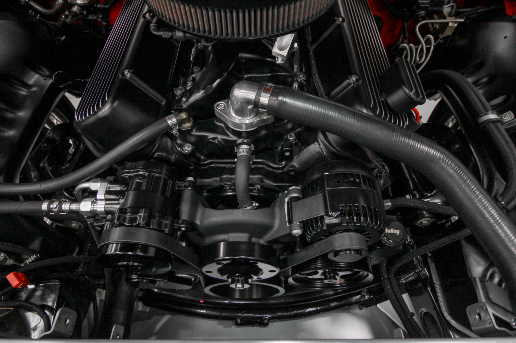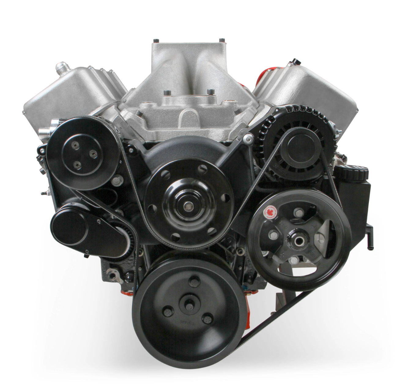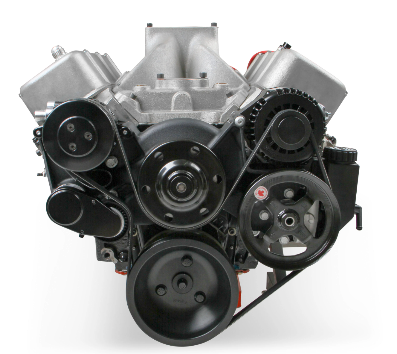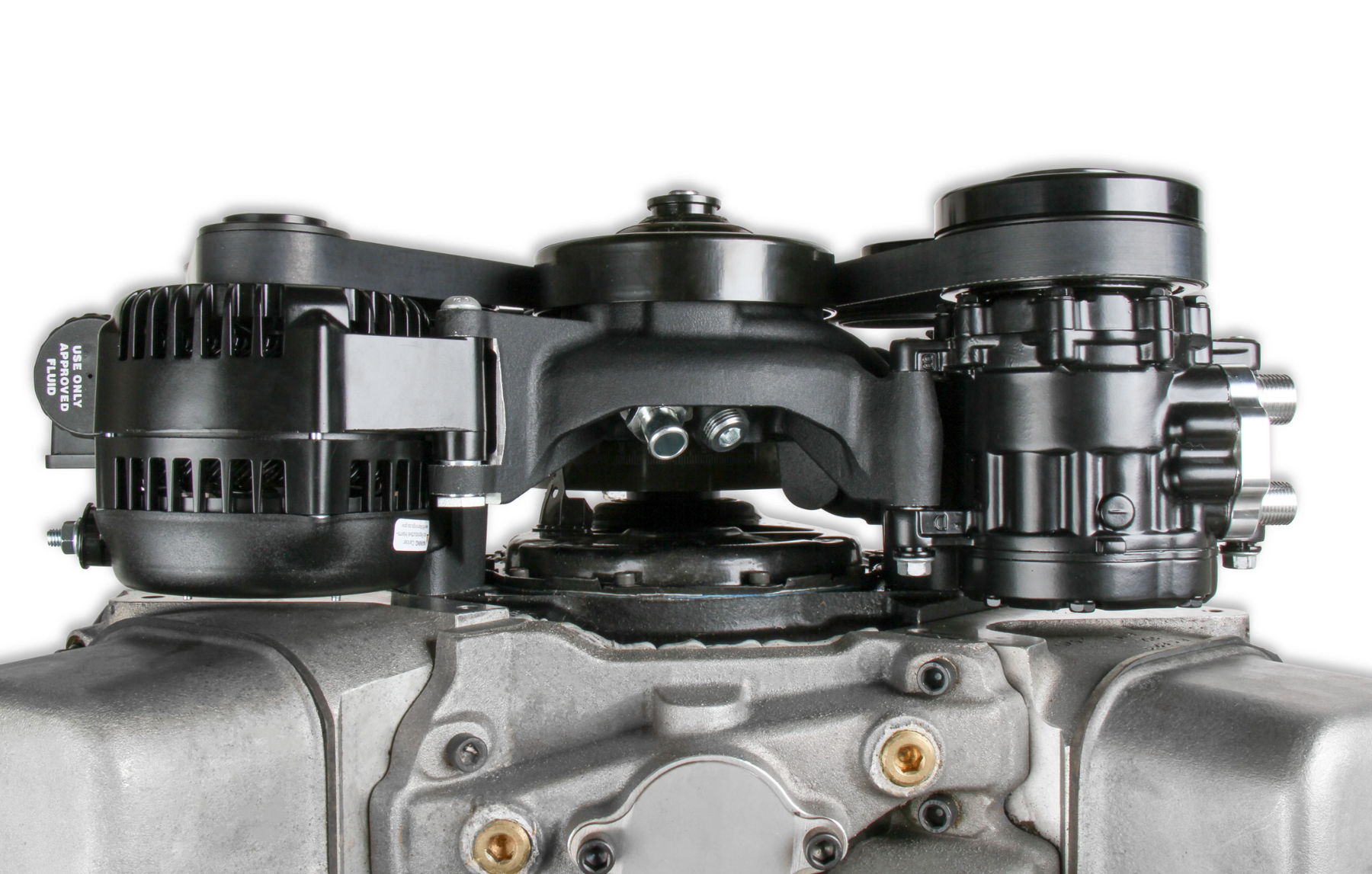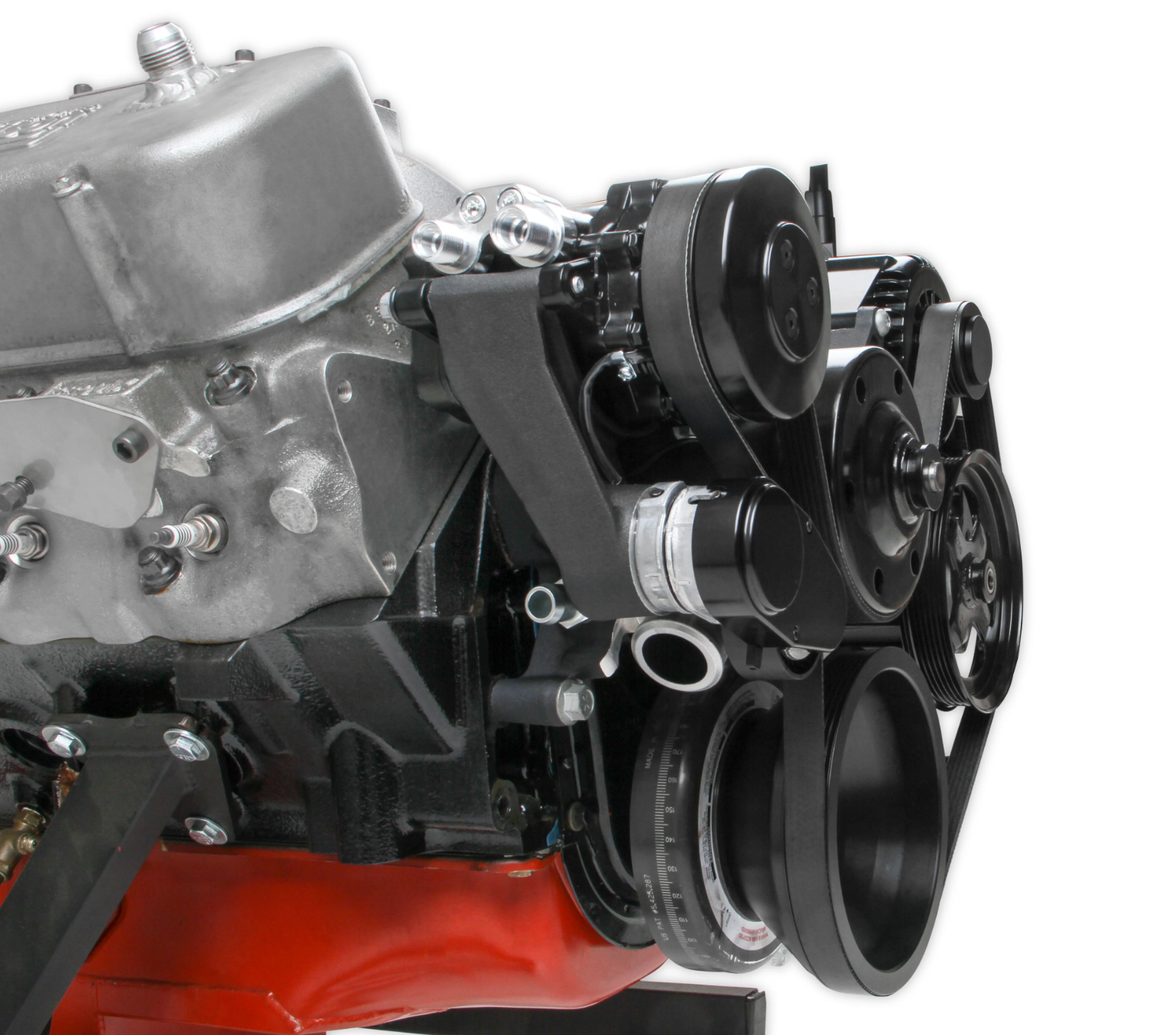 Holley's Mid-Mount accessory drives are now available for your big block Chevrolet engines! The revolutionary system does what no other accessory bracket system has done… GETS RID OF THE BRACKETS! The Mid-Mount complete accessory system has all accessories pulled in tighter than other accessory drives. At the heart of the system is a "bracketless" design, where the accessories bolt directly to the water pump for a clean, integrated form. The design offers superb engine visibility to show off your horsepower, not your accessories. The Holley designed alternator is just as innovative. This premium alternator utilizes 6-phase technology as found on the C7 Corvette. The water pump also shares its design efficiencies with that of the C7 Corvette. The compact and reliable SD7 A/C compressor and Type II P/S pump with baffled reservoir are also integrated. The water pump design incorporates optional side or top heater ports. The top thermostat bypass and heater ports are recessed into the manifold. So if you don't need them, you don't see them! When we say "complete", we mean complete. The Mid-mount system comes with everything you need. All accessories are included; the water pump, A/C compressor, Alternator, and P/S pump with reservoir. All pulleys and the belt are supplied. Even A/C line adapter, heater hose adapters, power steering to -6 AN hardline, and the alternator plug/harness are included. Easy assembly was a priority during the entire development of this accessory solution. Color graphical instructions walk you through every step of the ultra-easy installation. Patent - www.holley.com/patents/