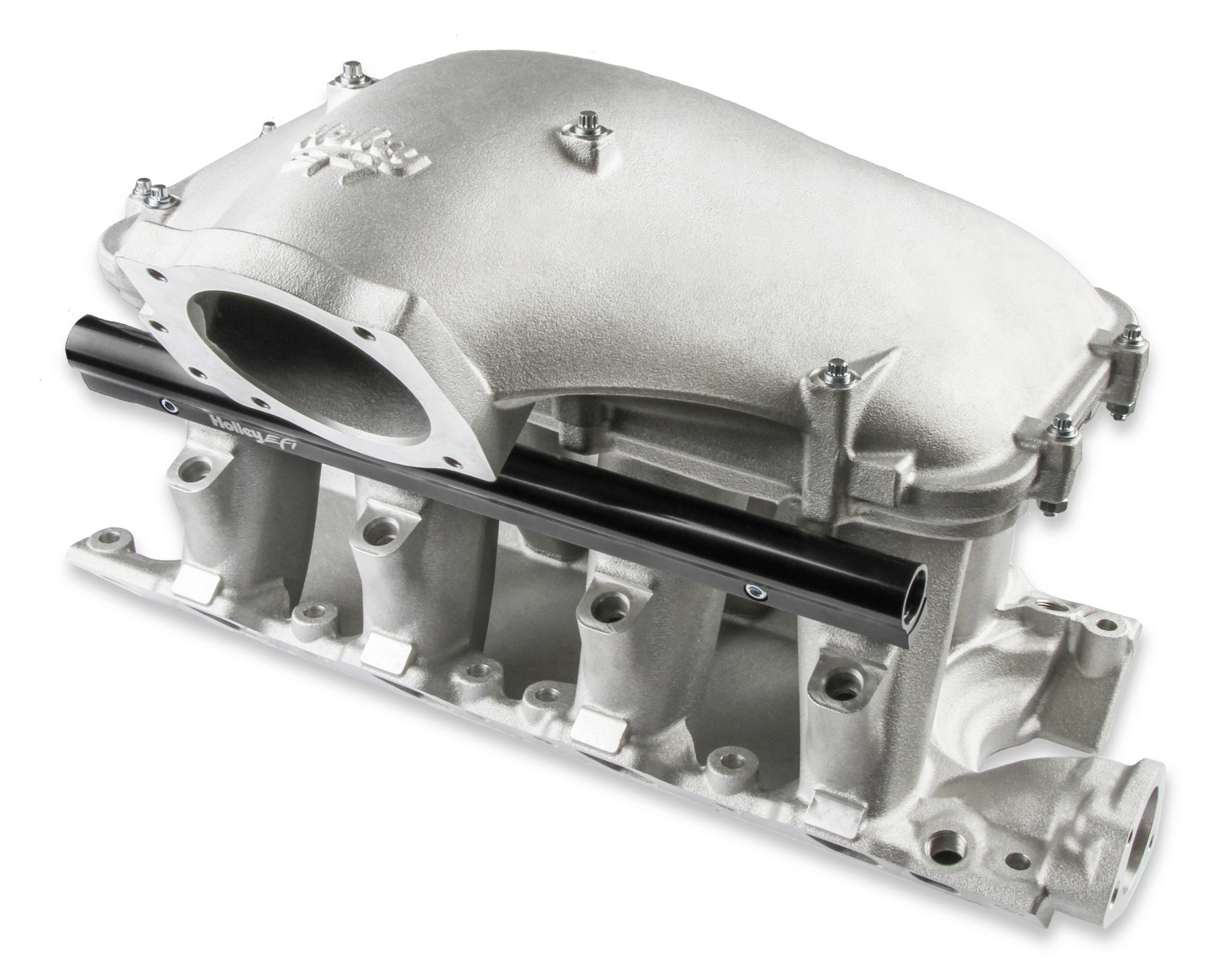 This EFI 351W Hi-Ram manifold comes with a 95MM 1986-95 Ford 5.0 throttle body flange side mount top. The runner length and tapered cross section design will perform well for a wide range of engine combinations. The engineering team also redesigned the water crossover passage to allow room for distributor phasing. Aggressive, bold, race-bred styling will make bad intentions clear for drag race, muscle car, marine, off-road, sandrails, pulling trucks, track, street-rod applications and more! Manifold is designed for a 9.5" deck height. • Runner length and the tapered cross-section designed to perform well for a wide range of engine configurations • EFI fuel rails are machined for -8AN O-ring Fittings with passages large enough to accommodate high fuel flows and dampen pressure pulsations in the fuel system and come standard with EFI Hi-Ram kits. • Cast aluminum construction. *** Requires the Use of Holley EFI Dual Sync Distributor - 565-111