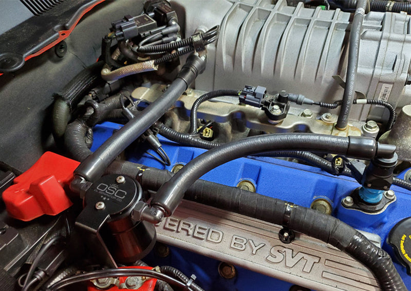 During the process of venting crankcase pressure back through your intake track, large amounts of oil, in the form of vapors can gather/accumulate in your intake tube, intake manifold runners and even dilute your gas, lowering its octane level. This happens on all engines and is even worse with forced inducted vehicles (supercharged and turbocharged) as crankcase pressures are increased. To combat this, we have developed an oil separator of our own design. Milled from solid billet aluminum this is a rock-solid piece. It has a knurled tank base for easy removal to drain the spent oil and an O-ring seal to prevent any leaks. Filtering consists of a fine mesh stainless steel screen that traps fine oil vapors and releases them once heavy enough to fall. They then pass through a 1/2" thick 1/16th" aluminum honeycomb filter where they grow every larger and then fall into the bottom. By the time the oil gets through the filter it's too heavy to be passed on into the intake. The tank holds 3 oz of fluid, while that may not sound like a lot, you shouldn’t see that much oil in your PCV system. Drain it every 2000-3000 miles and you will never come close to filling it.
