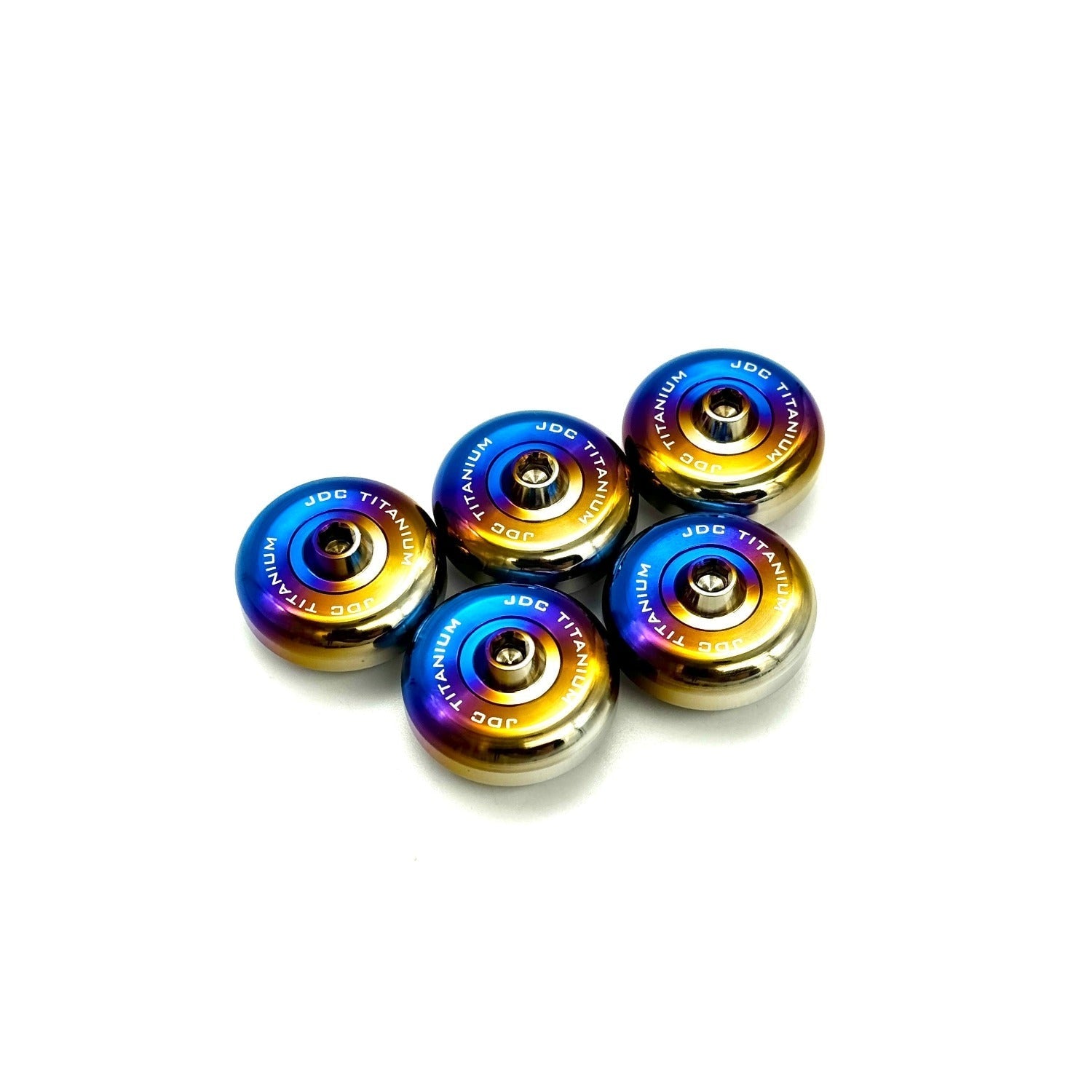 This kit includes custom CNC machined billet titanium washers that are identical in fitment to the OEM Honda washers. We've added a little JD "Custom" flare to the washers by adding a small recess where our custom bolts sit for a seamless finish. Every piece is crafted from premium-grade Gr5 titanium which provides superior durability, exceptional strength, and ultra-lightweight performance.