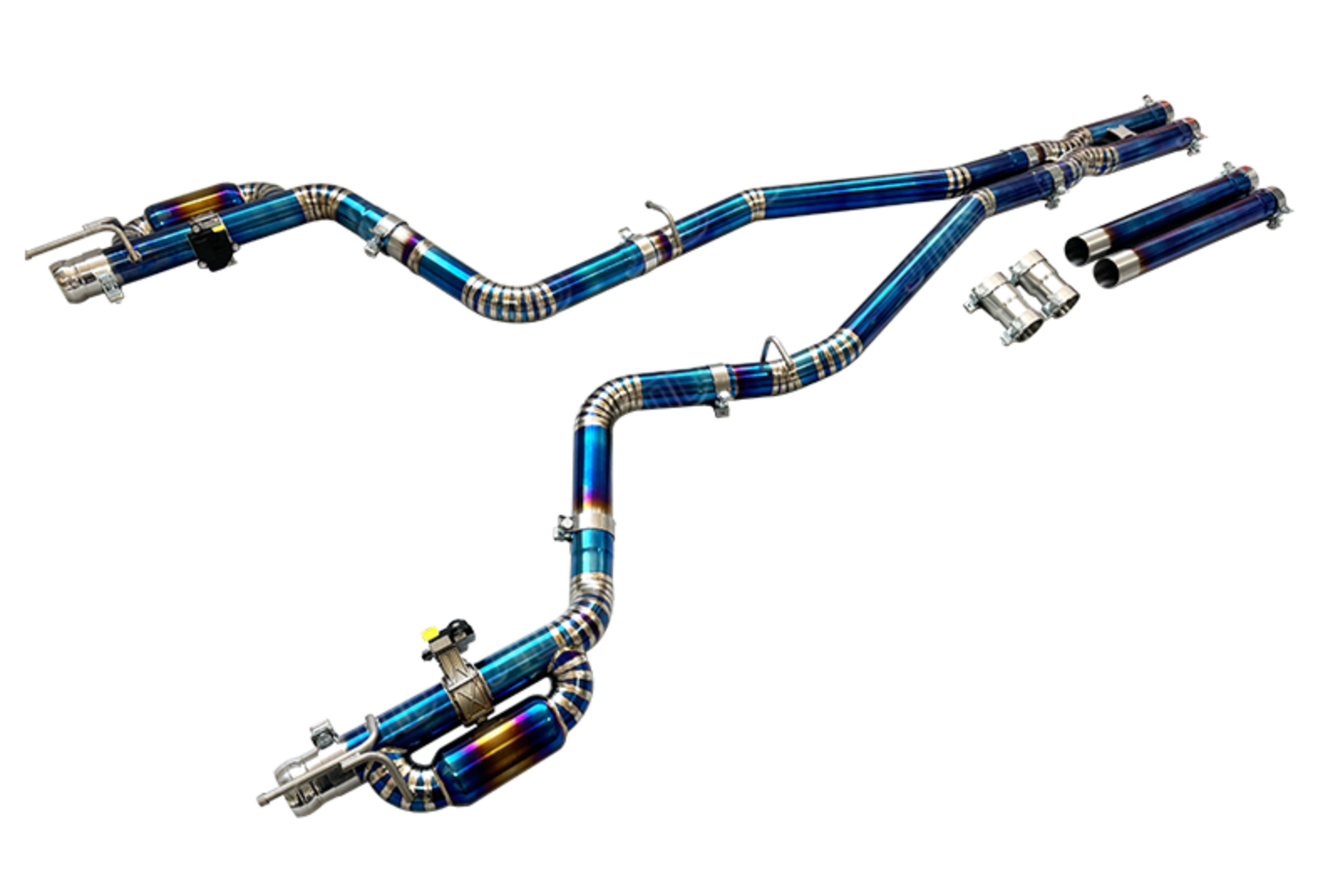 Manufactured from premium titanium alloy, the King Racing® Blue Titanium 3" Valved Cat-Back Exhaust is designed specifically for the 2015-2023 Dodge Challenger 5.7L. Featuring 3" diameter piping and advanced tig welding, this system enhances exhaust flow by delivering an average increase of 45+ horsepower. Its valved design provides precise control over sound and performance, while the 4" OD tips complete the aggressive look. This exhaust offers a durable, expert-level upgrade for improved power and driving dynamics.