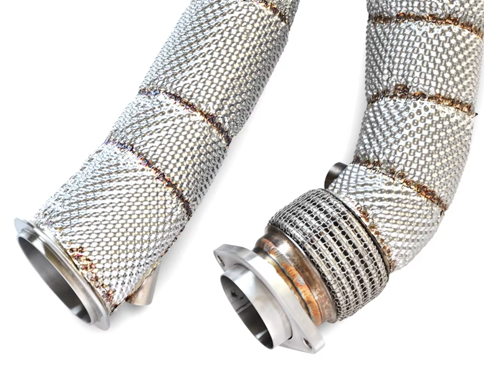 Crafted from 304 grade premium stainless this exhaust Down Pipe offers advanced airflow and performance gains over the factory setup. Manufactured using the latest in TIG welding technology, this Down Pipe deletes the restrictive catalyst delivering an average power increase of 20+ HP. This set also includes a heat wrap layer around the steel walls to protect against long term corrosion.