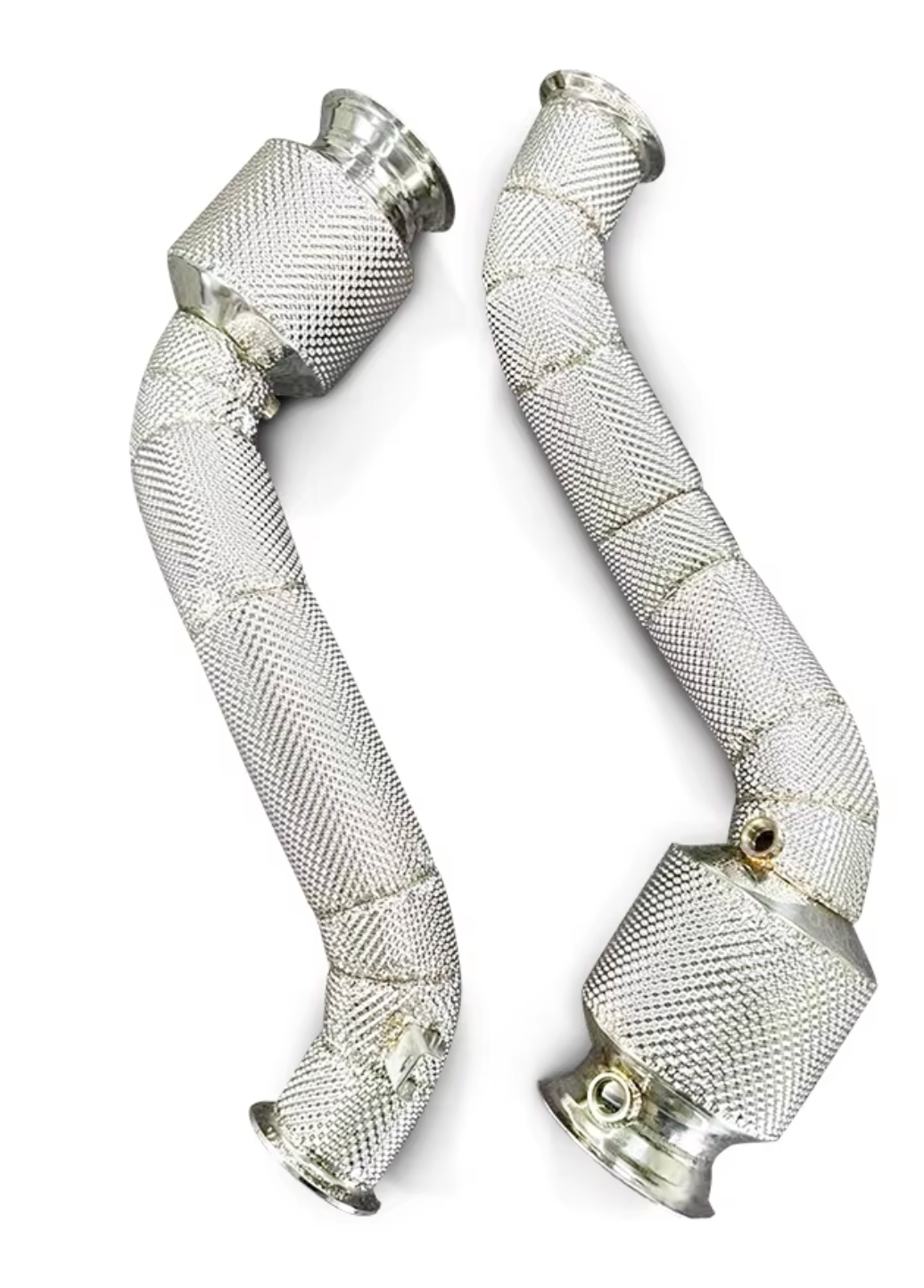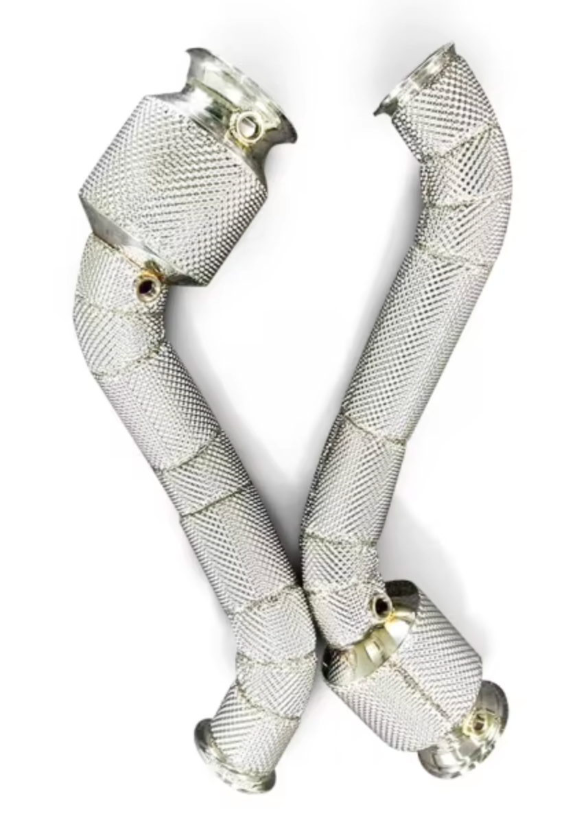 Crafted from 304 grade premium stainless this exhaust Down Pipe set offers advanced airflow and performance gains over the factory setup. Manufactured using the latest in TIG welding technology, this Down Pipe deletes the restrictive catalyst delivering an average power increase of 20+ HP. This down pipe set also includes a heat wrap layer around the steel walls to protect against long term corrosion.