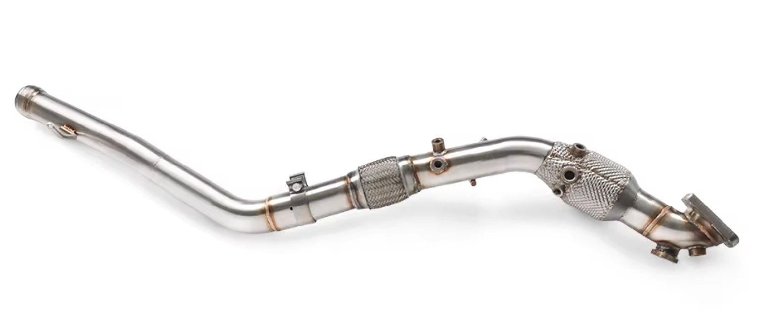 Crafted from 304 grade premium stainless this exhaust Mid Pipe offers advanced airflow and performance gains over the factory setup. Manufactured using the latest in TIG welding technology, this Mid Pipe deletes the restrictive catalyst delivering an average power increase of 15+ HP. This set also includes a heat wrap layer around the steel walls to protect against long term corrosion.