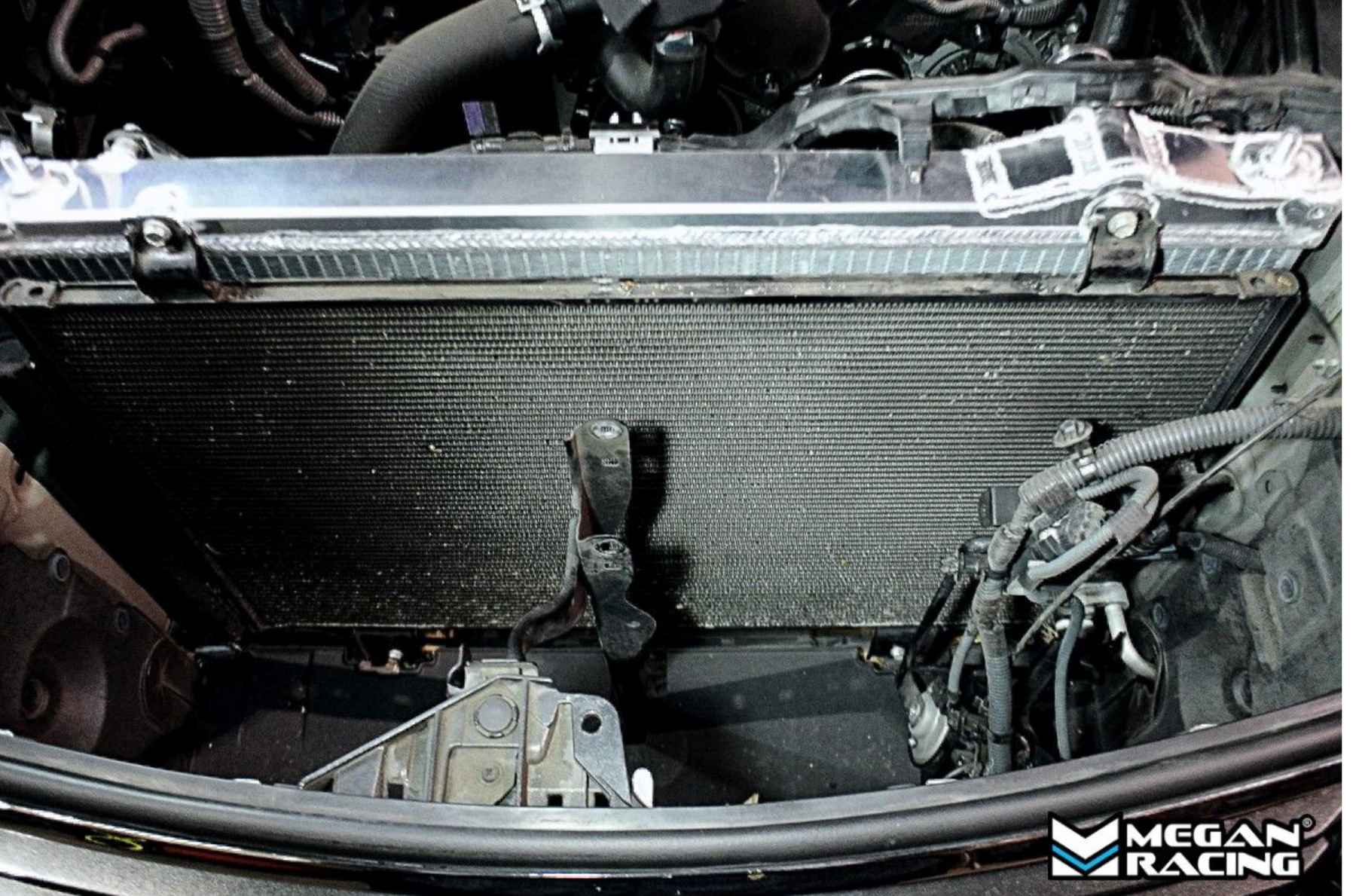 Megan Racing Radiators are comprised completely of aluminum. From the tanks to the primary core. Aluminum tanks are a great upgrade over the plastic usually found on factory radiators which are known to crack and leak especially as they age. The larger heat exchanging core is not only more efficient at transferring heat from the coolant, but also increases total coolant carrying capacity.