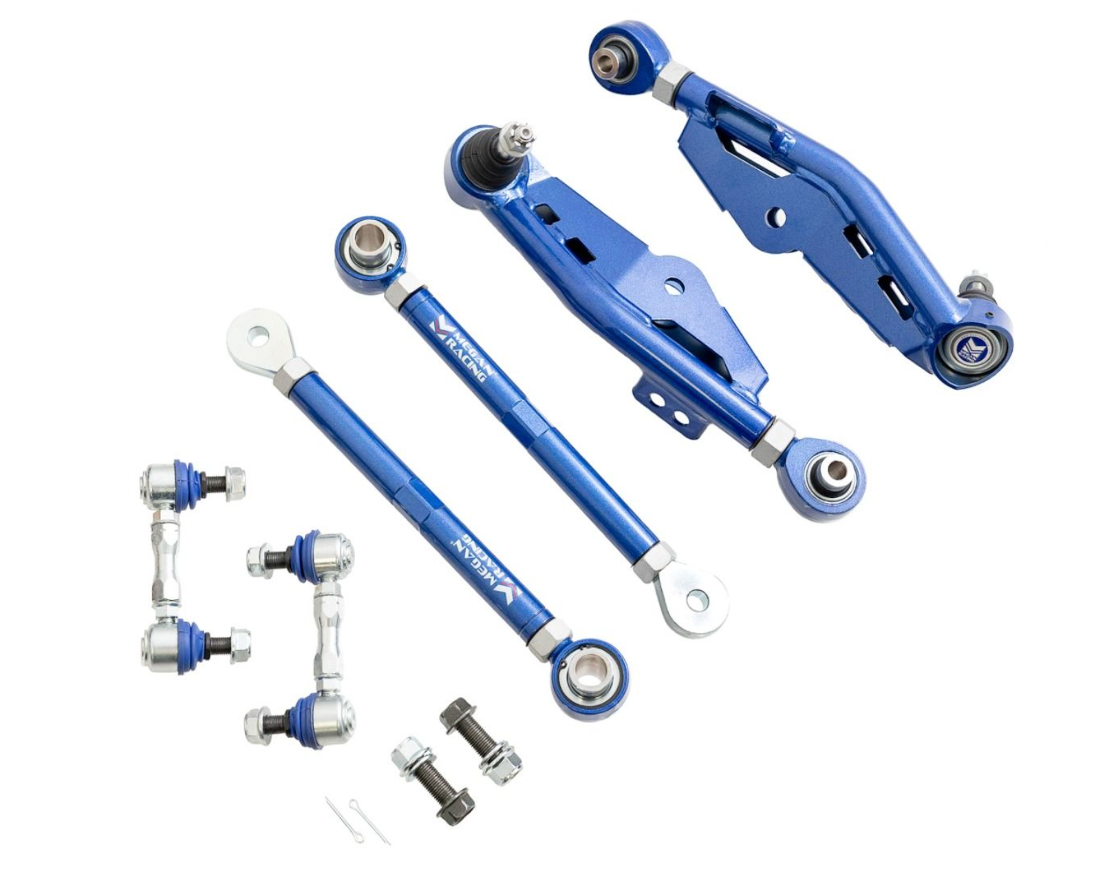 Megan Racing control arms are constructed of a Lightweight Steel-Alloy which is able to withstand the stresses of extreme competition these arms are powder coated with a 3-Stage process to ensure durability and protection against the elements. Spherical bushings eliminate all play found with rubber bushings but without any suspension bind. All hardware is treated to help prevent corrosion during the harshest weather conditions and are protected with a 1-year warranty against manufacturer defects.