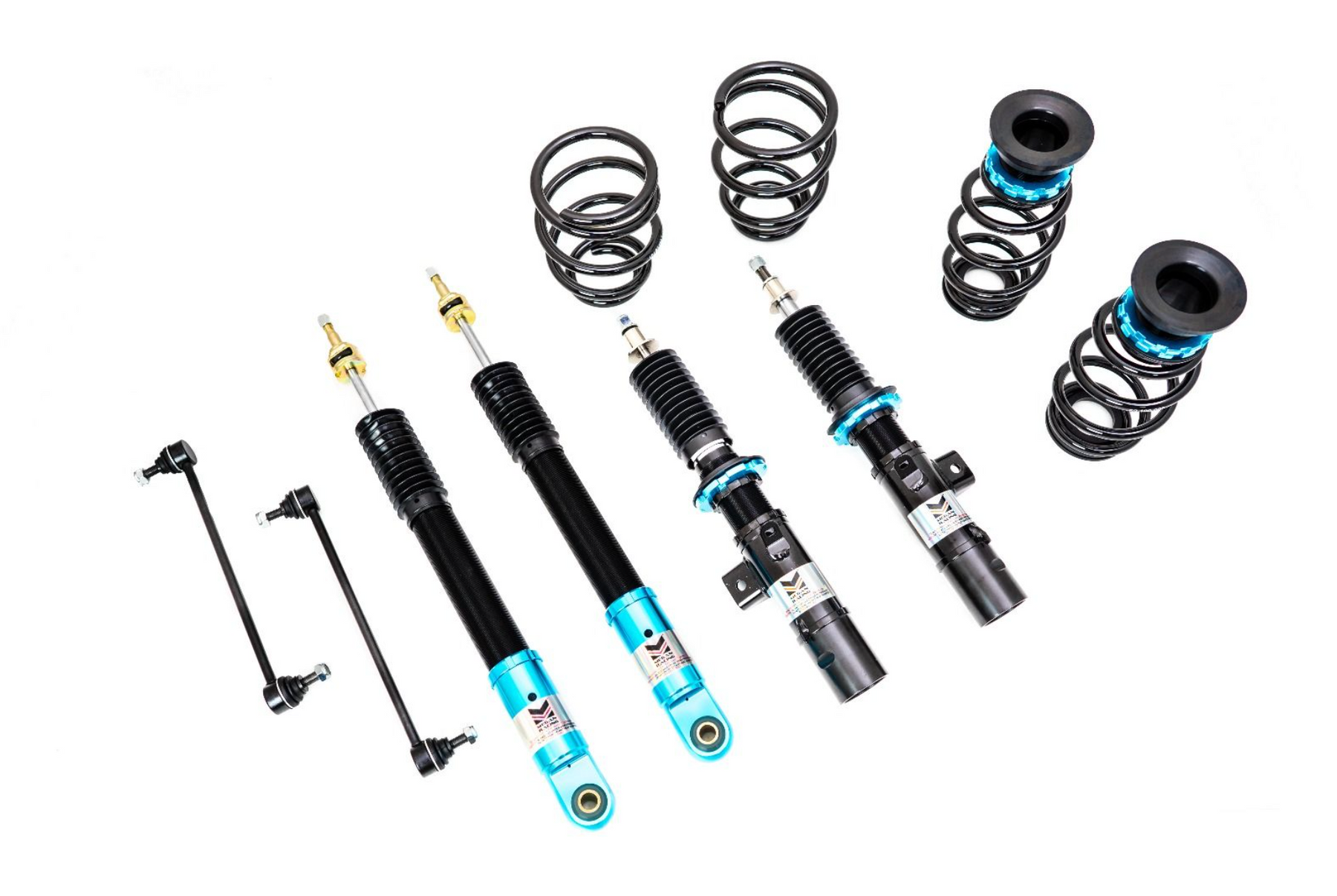 Our EZ Street Series coilover system has been developed prioritizing ride comfort for those who are seeking to increase the vehicle's exterior aesthetics while still retaining a nice ride. By retaining the factory oem top mounts, road noise is further insulated and kept away from the interior cabin. However with a slight increase of spring rates over stock and sport tuned shock valving, our kit is still more than capable enough for spirited driving and even some track abuse.