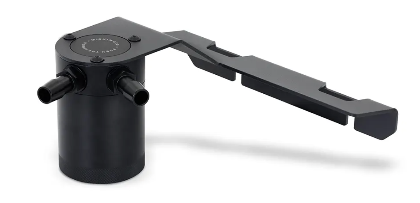 Unlike most air-oil-separator (AOS) systems, Mishimoto catch cans are not heated and don't drain blow-by back into the oil pan. These factors allow blow-by, including low-octane oil vapors, to condense in the can and drip into the canister, keeping it out of the engine permanently. This can is also fully washable and includes a slotted mounting screw, making servicing a breeze.