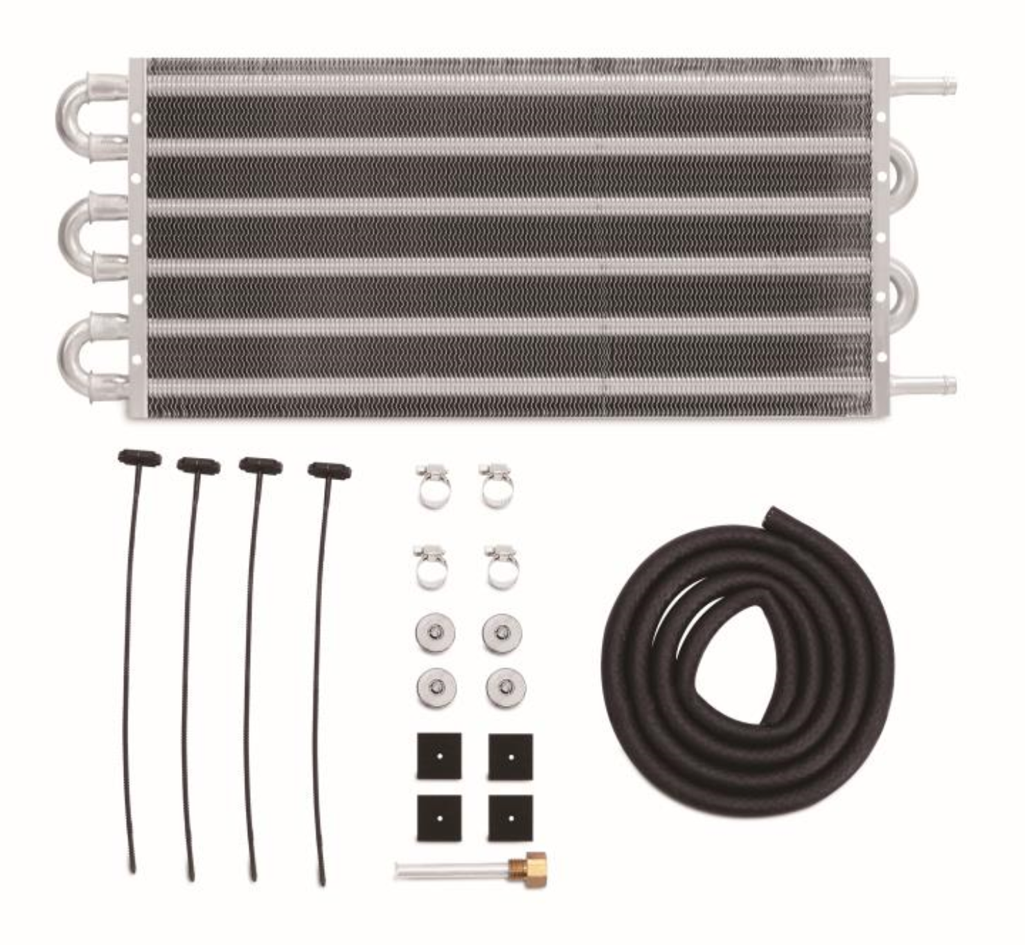 Keep high fluid temperatures at bay with a Mishimoto Universal Transmission Fluid Cooler! This cooler features a highly efficient tube-and-fin core that promotes dramatic temperature drops. Mishimoto universal fluid coolers are applicable for use with transmission fluid, engine oil, power steering fluid, and a variety of other automotive fluids. This ready-to-install kit includes 5 ft of durable rubber hose, a universal mounting kit, and four worm-gear clamps for secure connections. The universal mounting kit provides installation flexibility to fit any application. This cooler utilizes 3/8in push-on fittings, perfect as a replacement for a damaged stock cooler, or as an upgrade to a vehicle not equipped with a liquid-to-air cooler. As with all our products, this fluid cooler includes the Mishimoto Lifetime Warranty, ensuring superior product quality and craftsmanship.