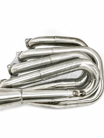 PLM Private Label Mfg. Power Driven B-Series hood exit race header features a 4-1 Merge Collector & Megaphone, to create equal exhaust flow.