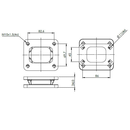 - The sizes refer to the following sequence: From turbo manifold to turbine housing.