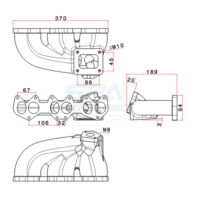 - SPA Turbo exhaust manifolds are precision CNC machined from high quality ASTM 536 60-40-18 cast iron.