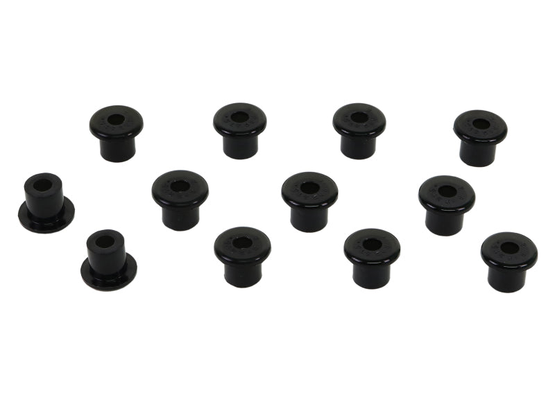 A critical service item for any leaf sprung vehicle. High kilometers and heavy load carrying causes excessive wear on rubber bushings. Whiteline's signature red bushings are made tough and offer outstanding abrasion resistance, high load bearing capability (4WD?s, utes and towing), flexibility, increased tensile strength and chemical resistance to oil, grease, ozone and weathering.