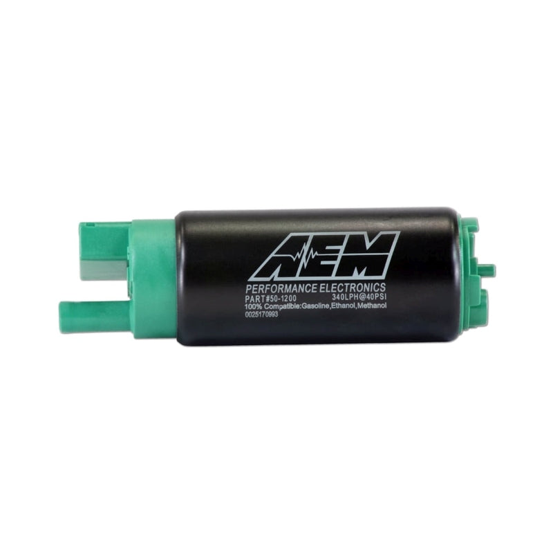 AEM's 340LPH E85-Compatible High Flow In-Tank Fuel Pumps feature robust internal construction that is designed to withstand the low lubricity characteristics of ethanol and methanol fuels, and are tested to work with ethanol fuels up to E100, methanol fuels up to M100 and all types of gasoline.The AEM 340LPH E85-Compatible High Flow In-Tank Fuel Pump is designed for in-tank mounting on high performance naturally aspirated and forced induction vehicles. It features a compact 39mm diameter that fits most applications and an offset inlet design that eases installation.The 340LPH E85-Compatible High Flow In-Tank fuel pump includes a wiring harness, pre filter, end cap and rubber buffer sleeve. Every AEM 340LPH E85-Compatible Fuel Pump is tested to flow 340 lph at 40 PSI before it is packaged for sale.TECHNICAL SPECS:Weight: 12.5oz (354grams)Outside Diameter: 39mm ODExternal Materials: Black plated steel with laser etchingInlet Fitting: 7.7mm ID, 11.0mm OD. Offset InlineOutlet Fitting: 8 mm hose clamp. OffsetPRV Activation: 80 PSIImpeller Design: Single Scroll Ceramic TurbineVOLTAGE SPECS:Connector Terminal: 6 mm Spade (pos/neg)Min Voltage Input: 6 voltsMax Voltage Input: 18 voltsCurrent Draw (40 psi): 12 amps (13.5v)Current Draw (80 psi): 15 amps (13.5v)Fuse: 20 amps (13.5v)* Power rating given at 43 PSI, 13.5v at the pump terminal with a BSFC of .5. Flow capability for horsepower support is ultimately dependent on fuel hose diameter, and system electrical voltage and amperage capabilities.