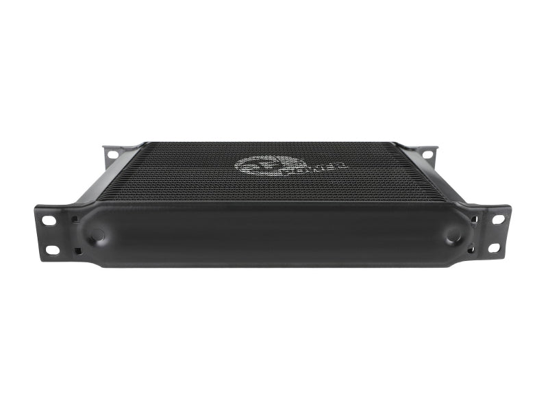 This BladeRunner Oil Cooler uses a durable brazed 25-row all-aluminum stacked plate construction that allows for greater efficiency and lower pressure drop than a standard tube-fin design. Designed to work in series with your vehicle’s original transmission oil cooler that is mounted down below. Provides lower transmission oil temperatures to reduce transmission wear and extend life of oil viscosity. The BladeRunner Oil Cooler kit makes installation simple with direct-fit mounting brackets, stainless steel hardware, and leak-proof AN connections. No cutting or alteration of factory hardware is required. Features a durable black finish with a laser-etched aFe POWER logo on the front and includes black-anodized billet aluminum AN fittings for a sleek appearance.