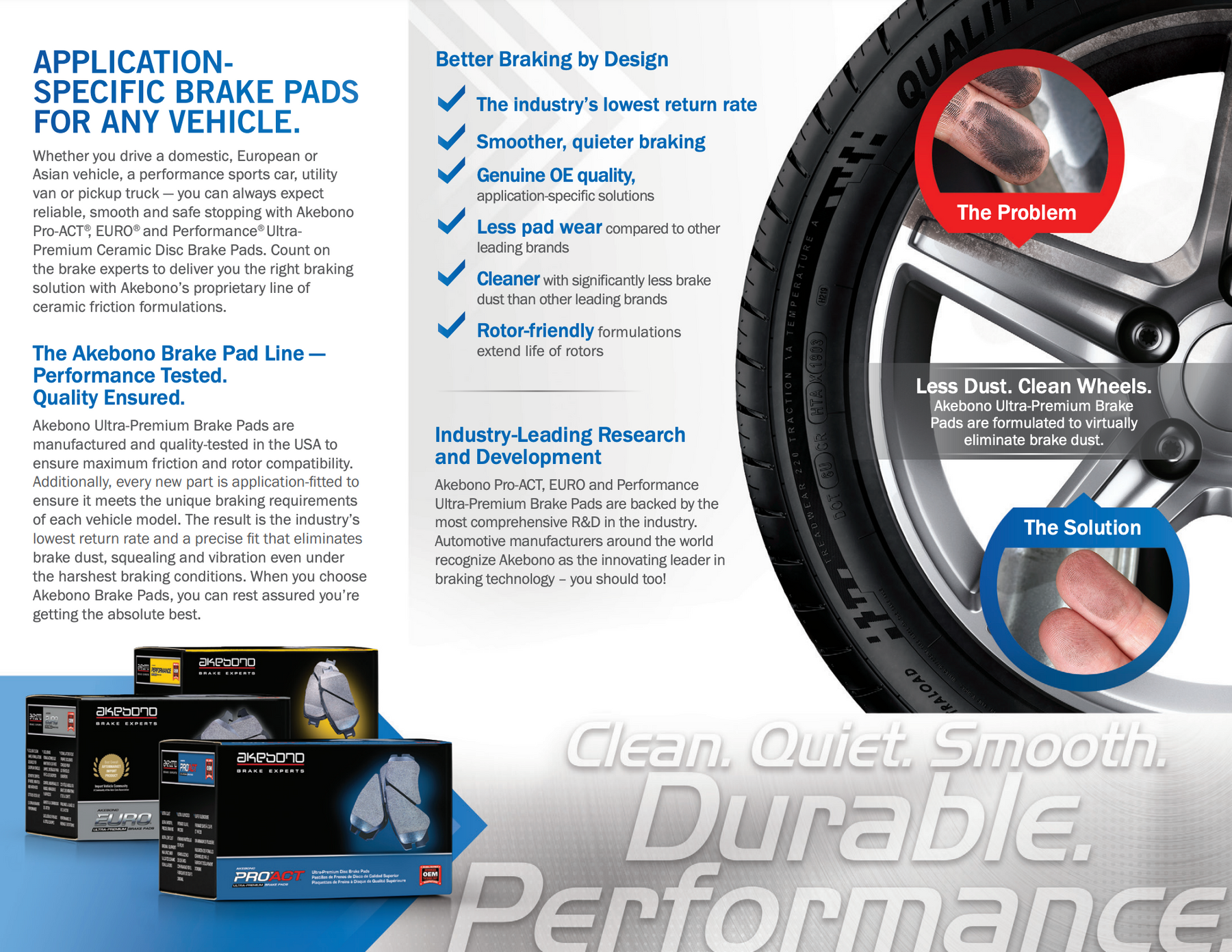 With more than 90 years of brake design and production expertise, Akebono provides the world’s automotive industry with advanced braking and noise, vibration, and harshness (NVH) solutions.
