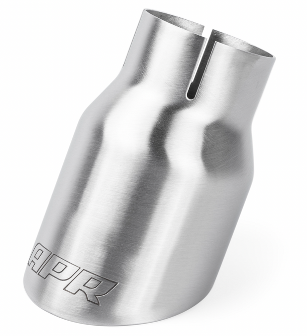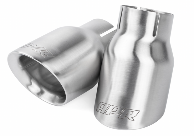 Our brushed slash-cut double-walled 3.5" exhaust tips upgrade the rear of the vehicle dramatically. The motorsport-inspired tips tuck nicely into the factory valance, gently following the valance's curves, demanding all the right attention in all the right places. Each tip features an engraved APR logo. Each kit is sold as a set of two tips.