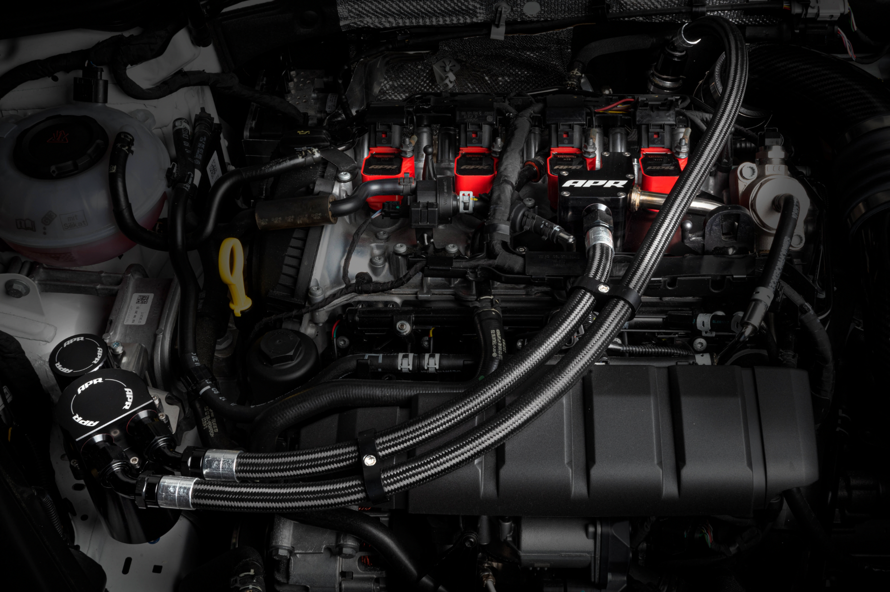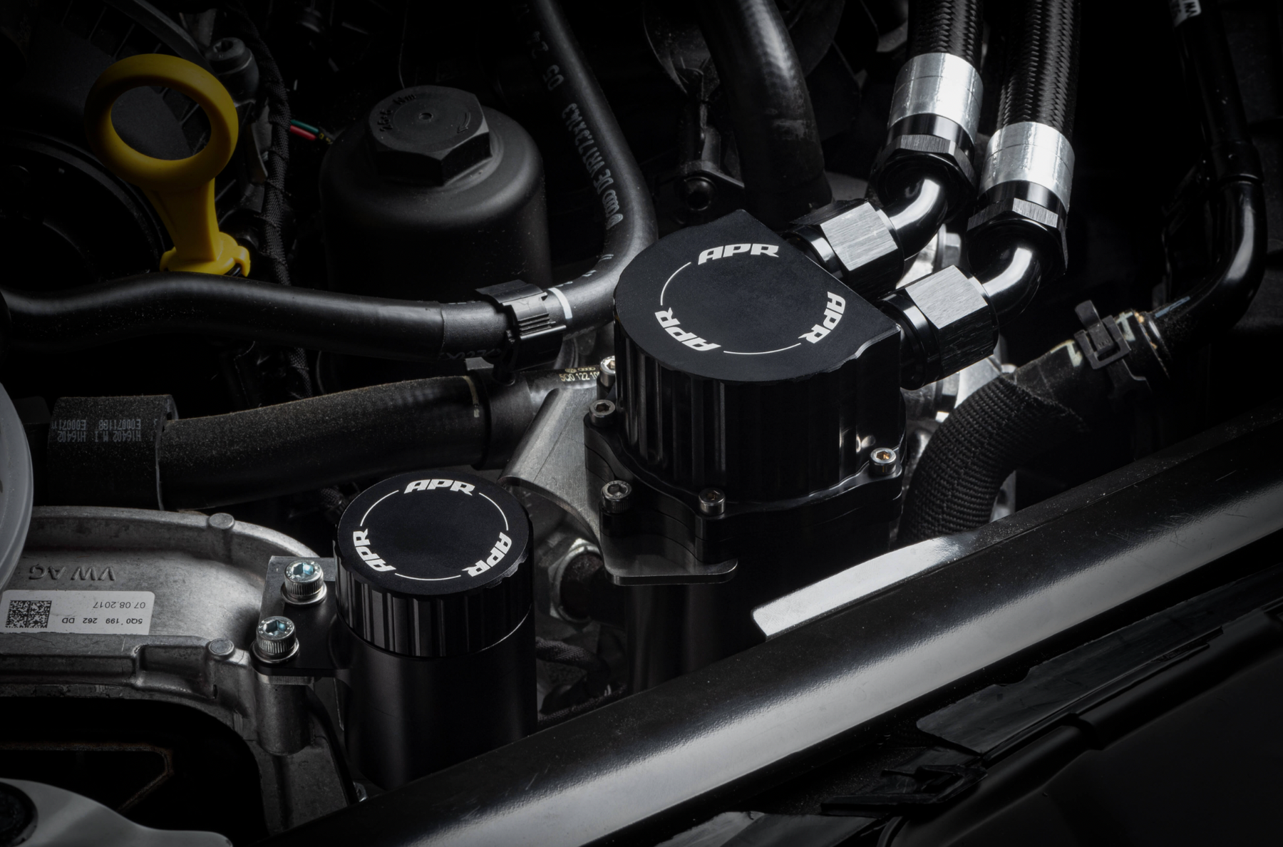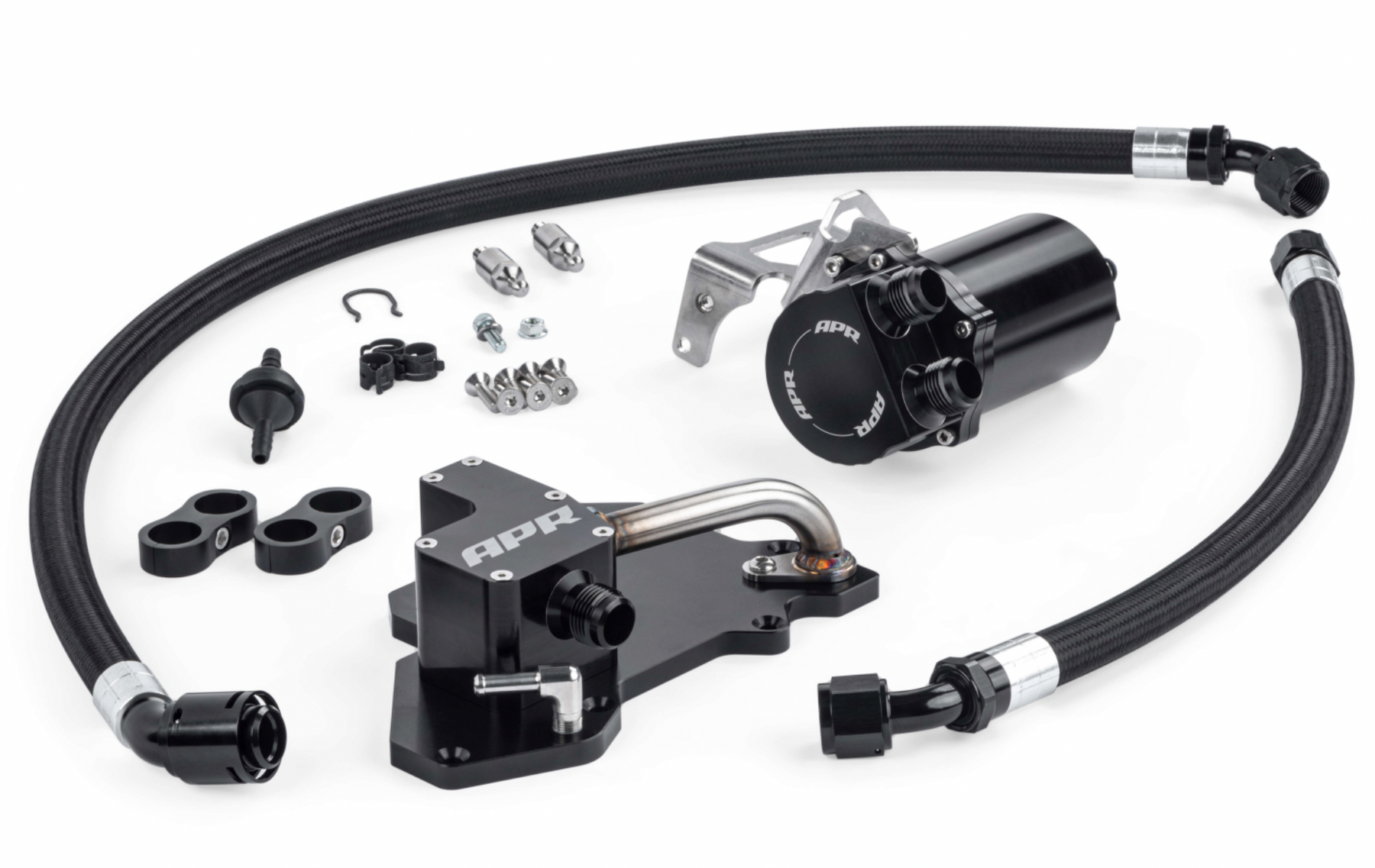 The APR Catch Can System with PCV Plate is a comprehensive upgrade to your engine's Positive Crank Ventilation (PCV) system. This factory-racecar-inspired-system takes a multi-step approach to addressing several performance robbing issues, and critical engine safety concerns, with the factory system. The basis for the system is simple: Your engine's factory PCV system has several issues. The APR Catch Can System with PCV Plate addresses each one.
