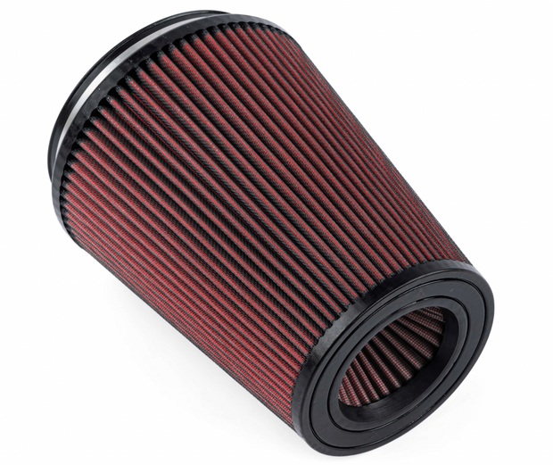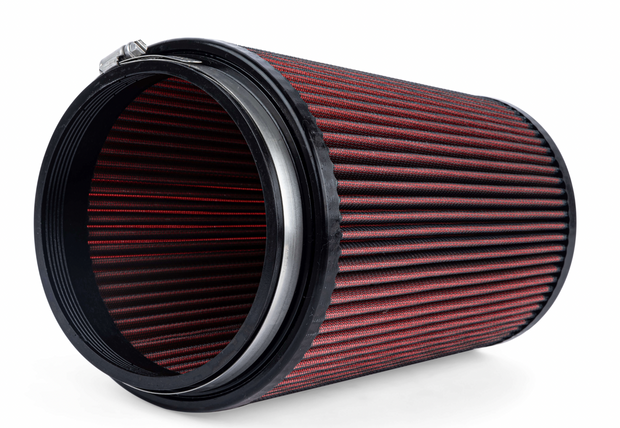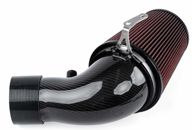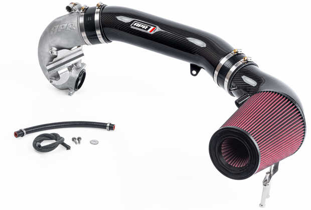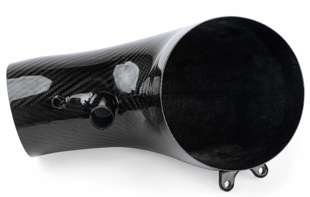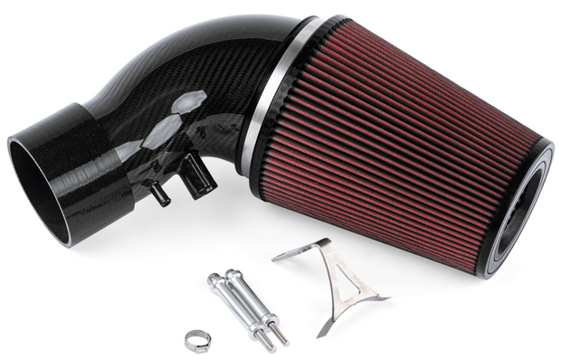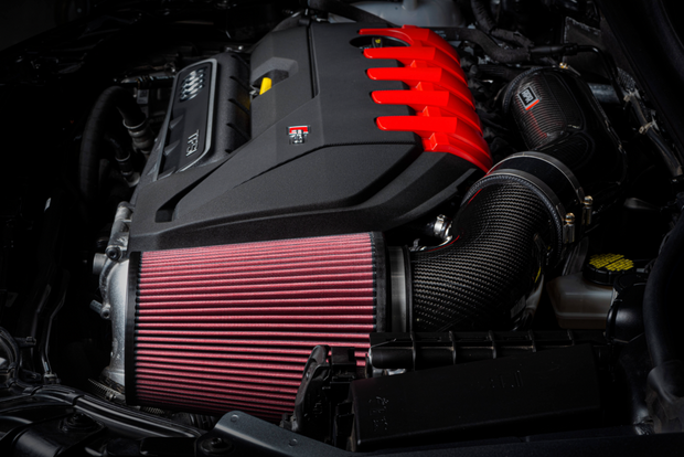 Adding the optional APR Intake Filter completely transforms the APR Turbocharger Inlet System from subtle too extreme. Our massive 9" long cotton filter with frontal opening connects to a 6" carbon fiber inlet tube that gradually necks down to the 4" back tube. You will hear every ounce of the 5-cylinder turbocharger system's massive demand for airflow, and you'll do so at a 60% CFM improvement over stock! This was only possible with an open filter system as the airflow demands called for an unboxed design. Simply put, this is the best intake system on the market for satisfying uncompromisingly demanding airflow requirements.