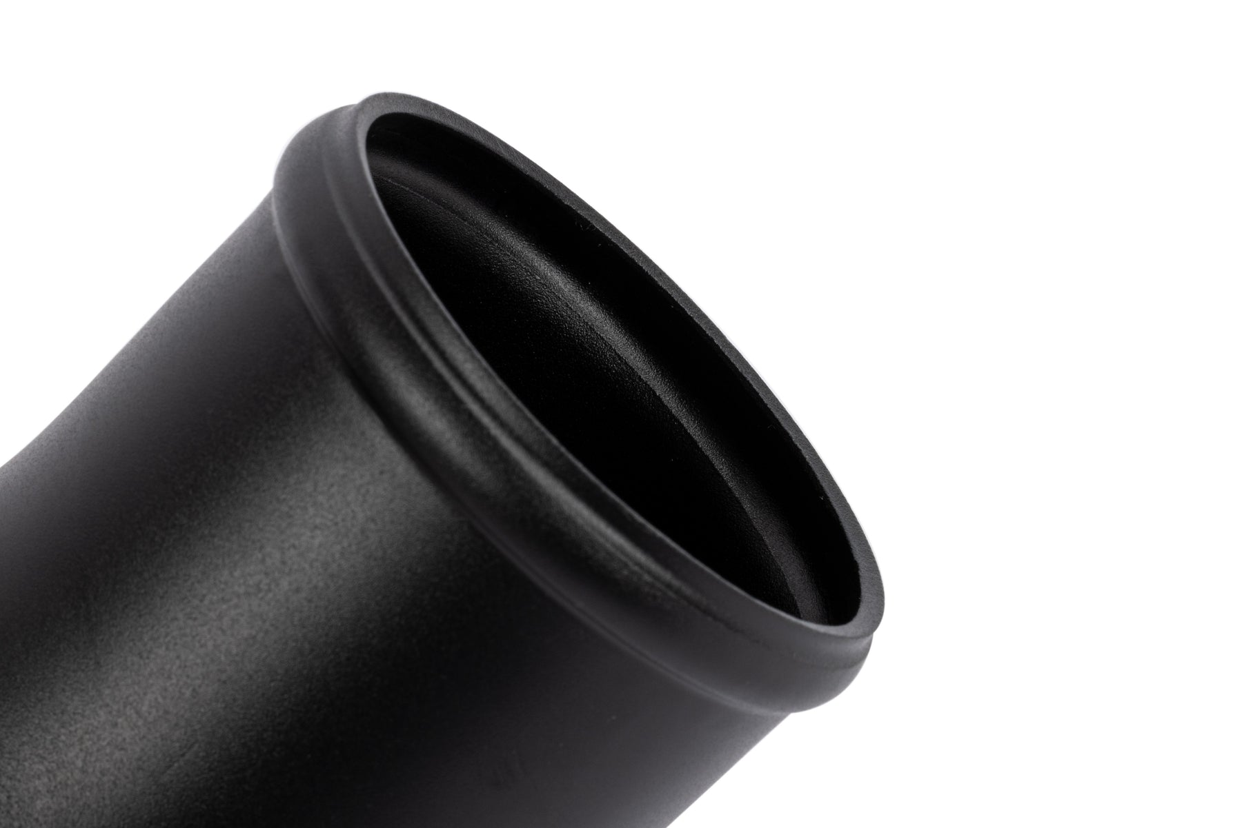 The APR Turbo Outlet Pipe replaces the factory plastic pipe with a high quality aluminum pipe that’s a constant diameter within. We pay close attention to the airflow path and provide as few bends and tight radius turns as possible to maximize performance. Unlike the factory plastic pipes, ours won’t melt and crack under extreme conditions. The pipe features bead rolled connection points to help resist hose slippage, and all mounting brackets are tig-welded to the pipe for a strong connection. Finally, the pipe is finished in an attractive satin-black finish. This all results in a more reliable setup and increased performance through a smooth and strong uninterrupted airflow path. These hoses are compatible with both OEM and upgraded APR charge hoses.