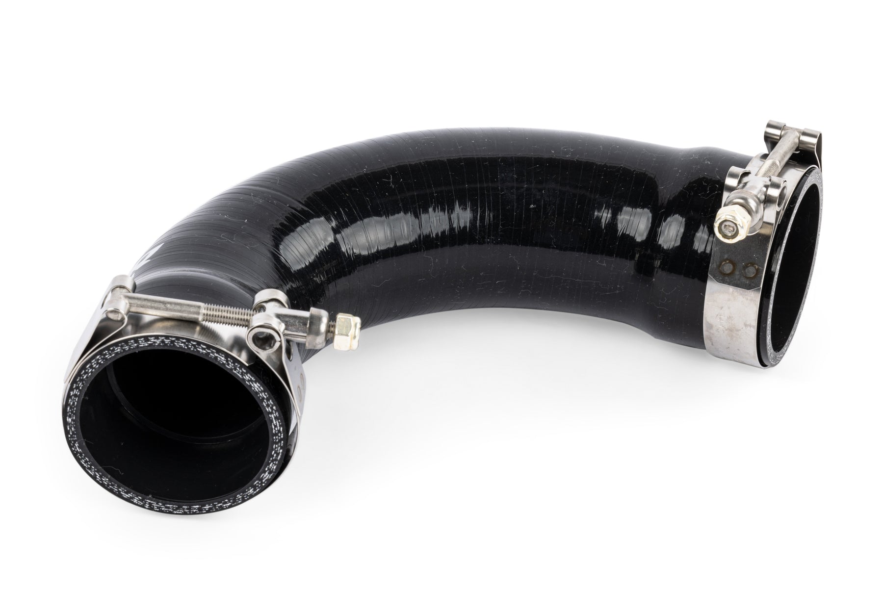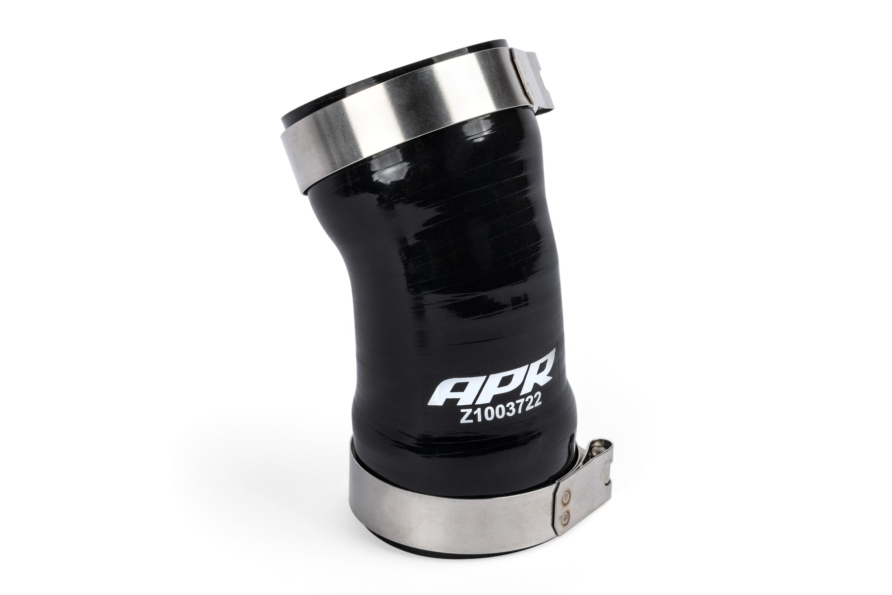 The APR Throttle Body Hose replaces the factory rubber hose and worm-gear clamps with a high quality multi-ply silicone hose and strong Clampco T-bolt clamps. The interior of the hose is smooth and lined with a fluorosilicone material designed to resist oil degradation and extend component life. EZ-Flow stepped lips within the hose allows for a smooth connection from hose to pipe for uninterrupted airflow. We pay close attention to the airflow path and provide as few bends and tight radius turns as possible. Furthermore the hose material adheres to its mating surface under high temperature to help create a stronger leak and slip free connection. This all results in a more reliable setup and increased performance through a smooth and strong uninterrupted airflow path. This hose is compatible with both OEM and upgraded APR charge pipes.