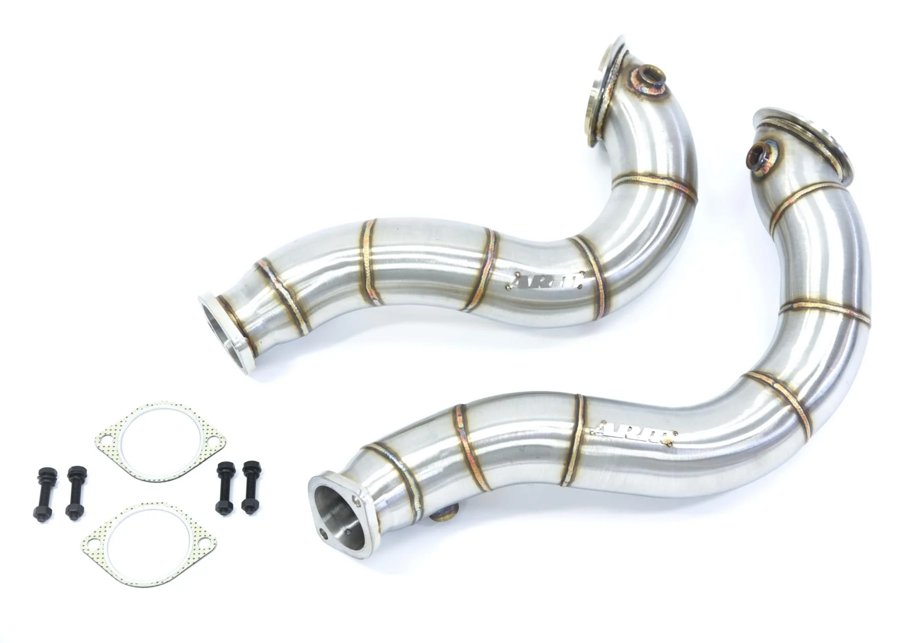 The ARM 335i catless downpipes are designed with a 3" stainless steel construction to optimize exhaust flow and obtain optimal back-pressure. Each downpipe has 2x O2 sensor bungs so the factory BMW O2 sensors can be remounted allowing the ECU to continue to monitor the exhaust gases. Because these downpipes are a catless design, an ECU tune or CEL fix will be needed to avoid a CEL from displaying on instrument panel.