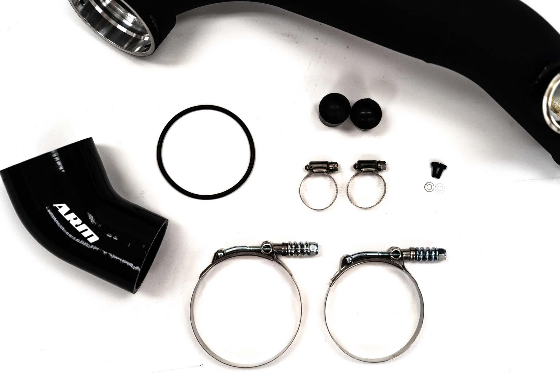 The ARM Motorsports E60 N54 charge pipe is designed to handle the highest levels of boost. Constructed of 6061 aluminum, the ARM N54 E60 535i charge pipe connects to the throttle body using a precision CNC machined connection which is secured by the OEM metal C-Clip. It also includes an upgraded O-Ring for a secure and leak-free seal.