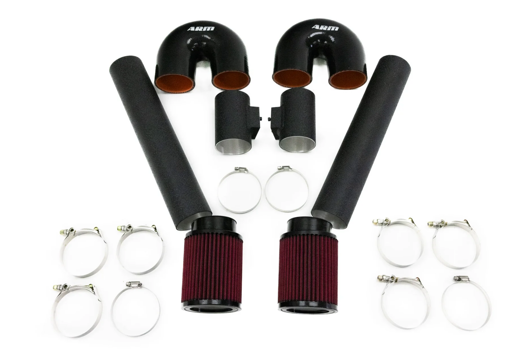 With either setup, the standard filter location or the Front Facing Upgrade, you will receive the ARM Dry Filters. The ARM Dry Air Filters included in the kit are made of high quality multimedia material designed to allow maximum airflow to your engine while providing effective filtration. These filters are engineered with multiple layers of filtration media, including a high-flowing synthetic fiber layer that captures even the smallest particles, while allowing for maximum airflow to the engine. The ARM Dry Filters help to ensure that your engine has the most airflow available while being protected from harmful contaminants.