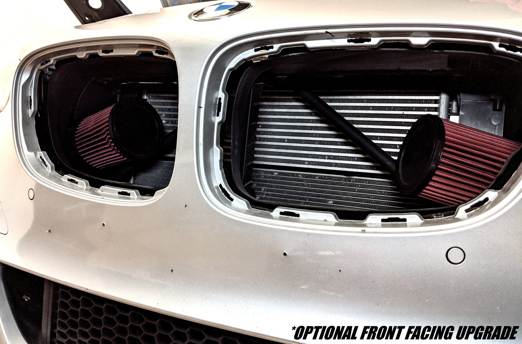 The ARM N63 Intake is available with an optional Front Facing Upgrade which relocates the filters from the engine bay, to behind the front grille. This option allows your N63 to draw in cooler air than the engine bay setup can offer. The optional Front Facing Upgrade is the ideal setup for your N63 if you're looking to maximize power.