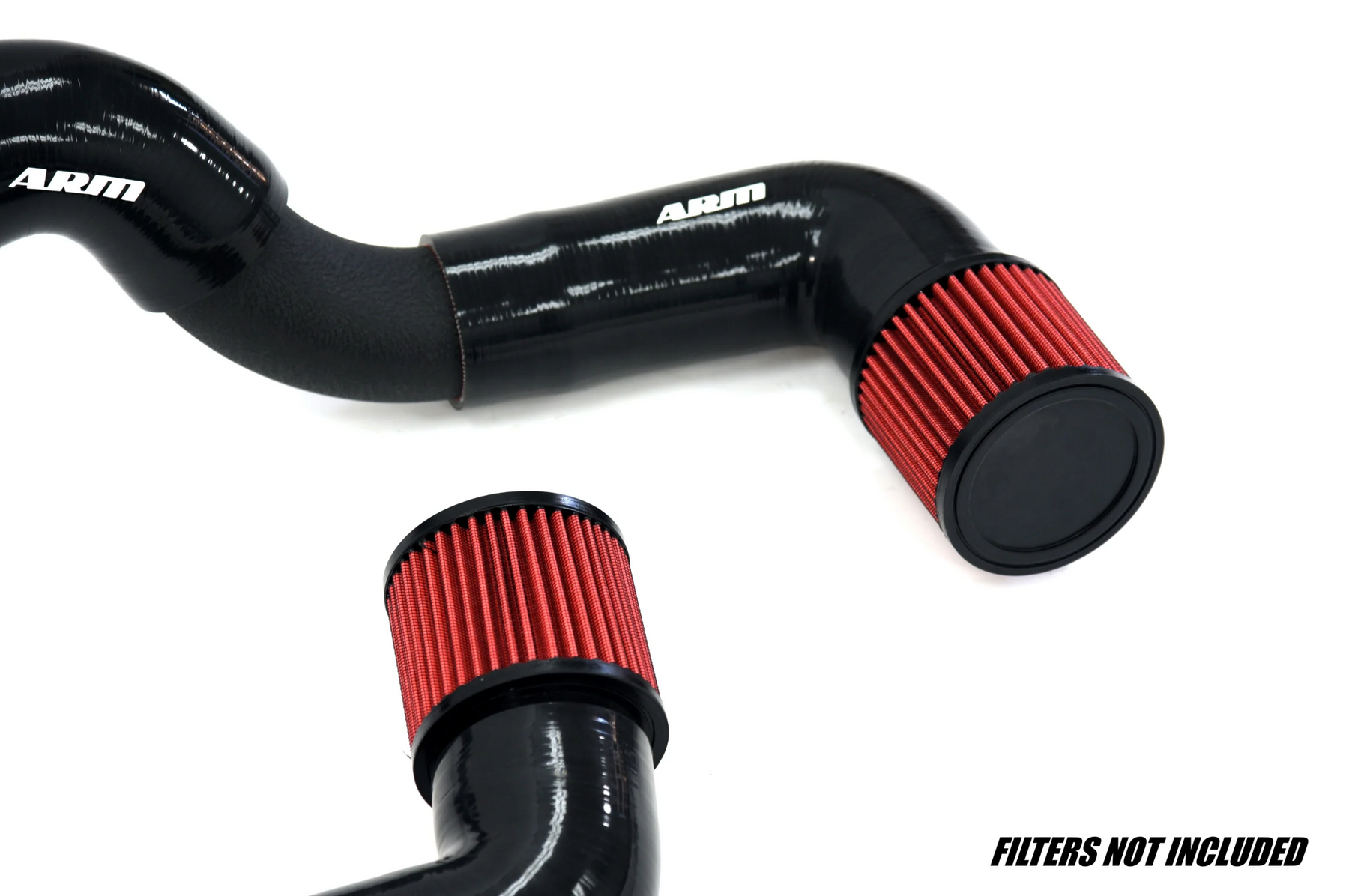 The ARM N63 Front Facing Intake Upgrade is an optional upgrade to the ARM N63 Intake. The ARM N63 Front Facing Upgrade relocates the air filters from the engine bay to behind the front grille. This allows your N63 to intake cooler air than the engine bay setup can offer. An ARM N63 Intake is required to install the ARM N63 Front Facing Intake Upgrade.
