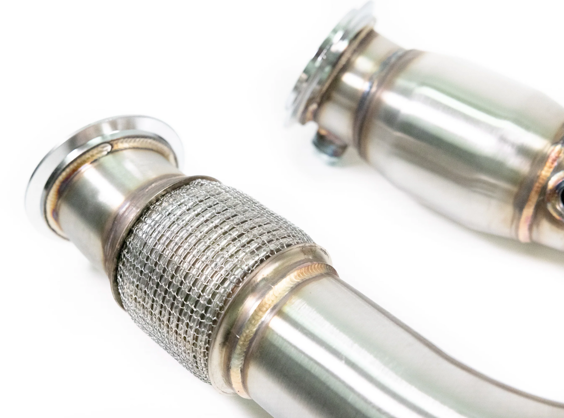 Catless downpipes are considered a standard upgrade for any F80 M3 owner looking to safely push their S55 engine beyond basic Stage 1 tuning. With Stage 2 and up tuning, higher boost increases back-pressure at the OEM catalysts and chokes the S55's turbochargers, causing them to work harder and shortening their life.