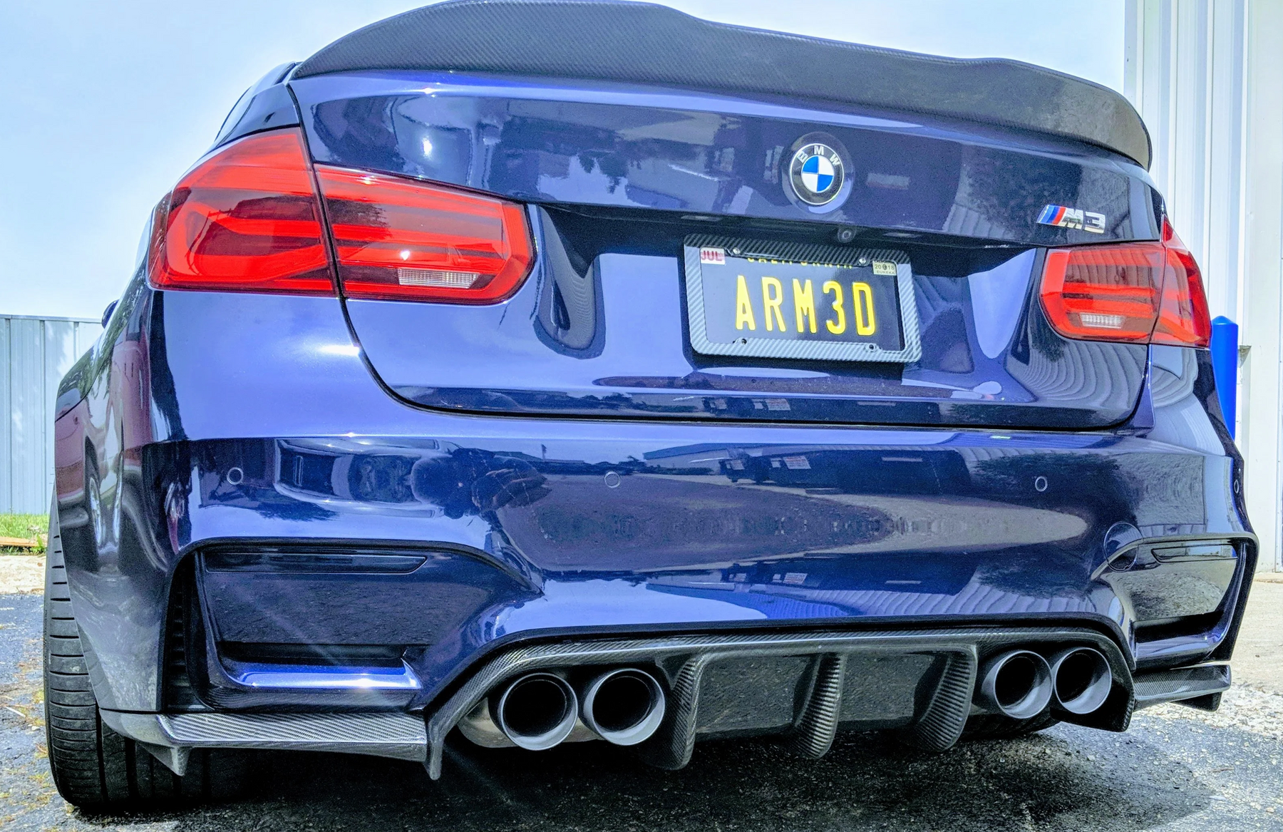 ARM F80 M3 Exhaust Tips are a direct replacement for the stock M3 exhaust and do not require any trimming or welding. They are secured using a single hex bolt which minimizes any unsightly extra clamps or hardware to keep a clean and stunning look. These tips slip over and bolt down over the existing oem exhaust tips.