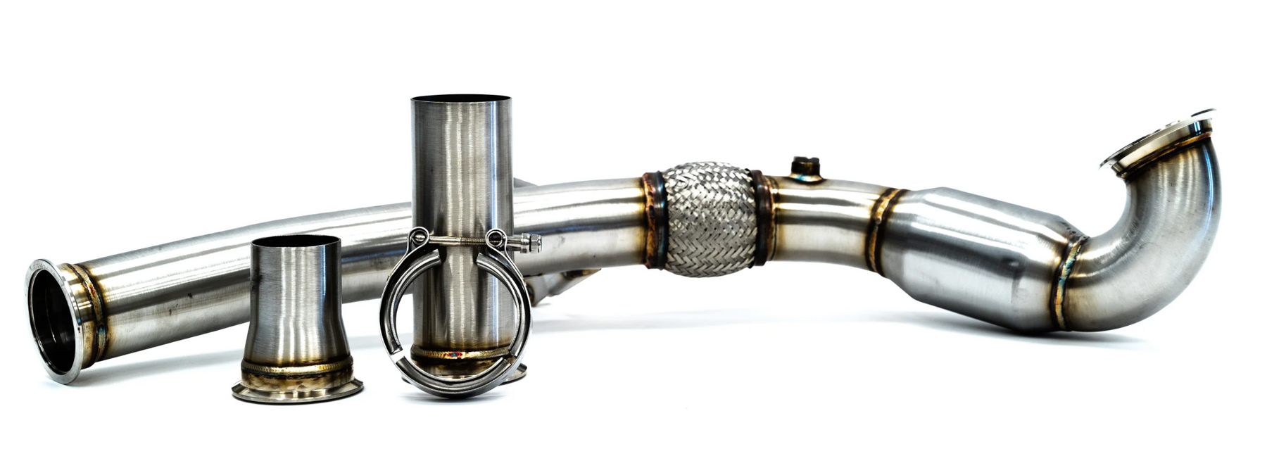 In addition, the improved exhaust flow will allow you to run increased boost targets found with Stage 2+ tuning software. Attempting to run Stage 2+ tuning files over 25psi with the stock downpipe can put excessive stress on your turbocharger and is not recommended. Most tuners require an upgraded downpipe to run their more aggressive tunes.