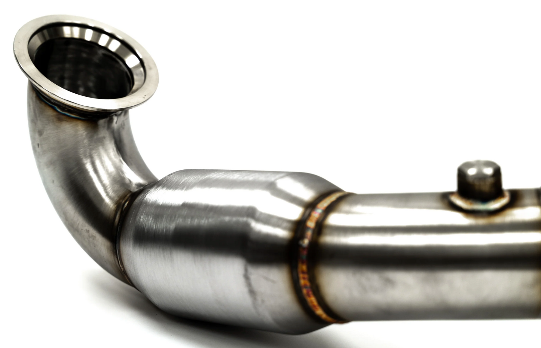 The ARM Audi A3 Downpipe is an essential upgrade if you're looking to get the most from your Gen 3 EA888 equipped A3. The stock downpipe is built with a dense catalyst that hinders exhaust flow on your EA888 engine, causing higher back-pressure, increasing turbo lag and causing your turbo to work harder.