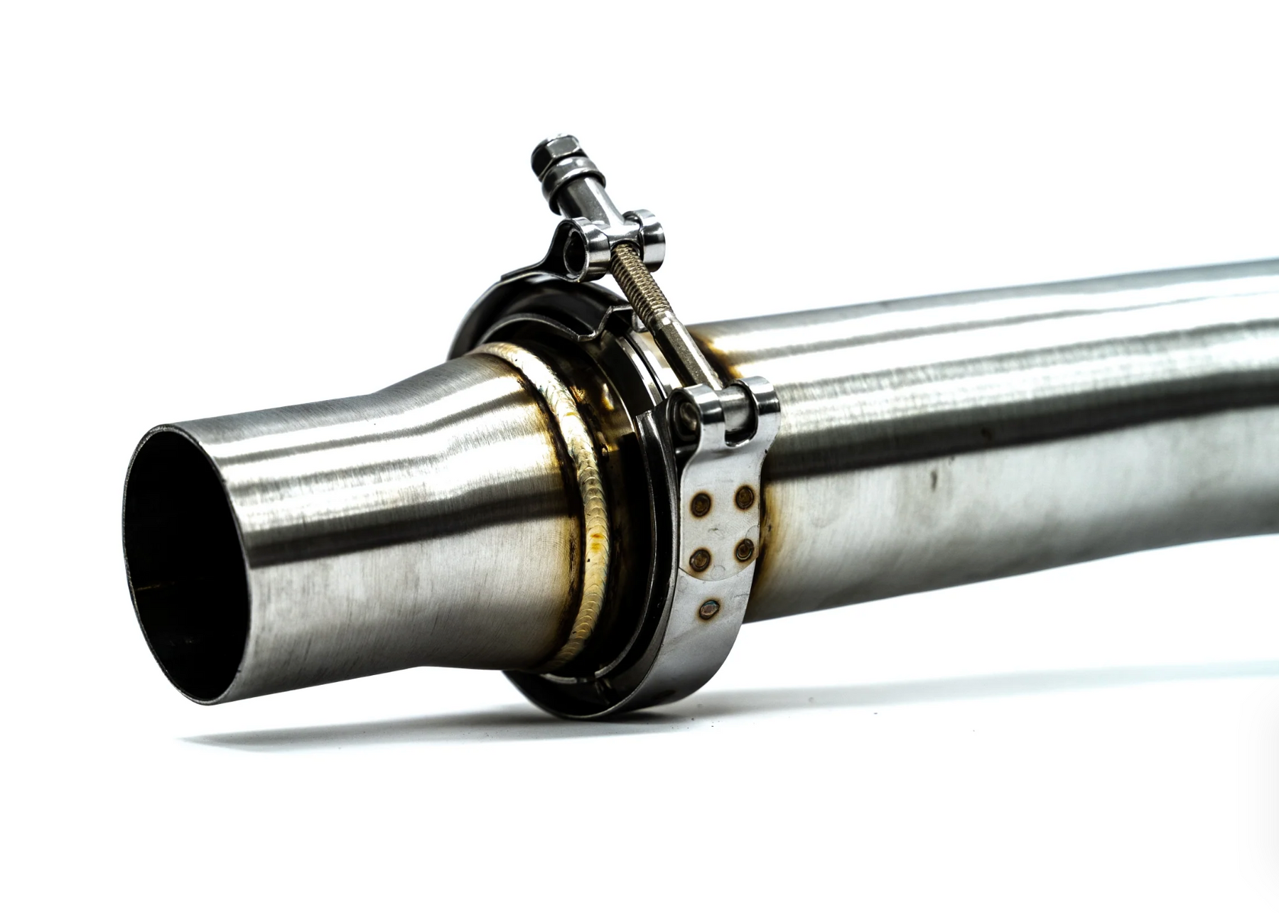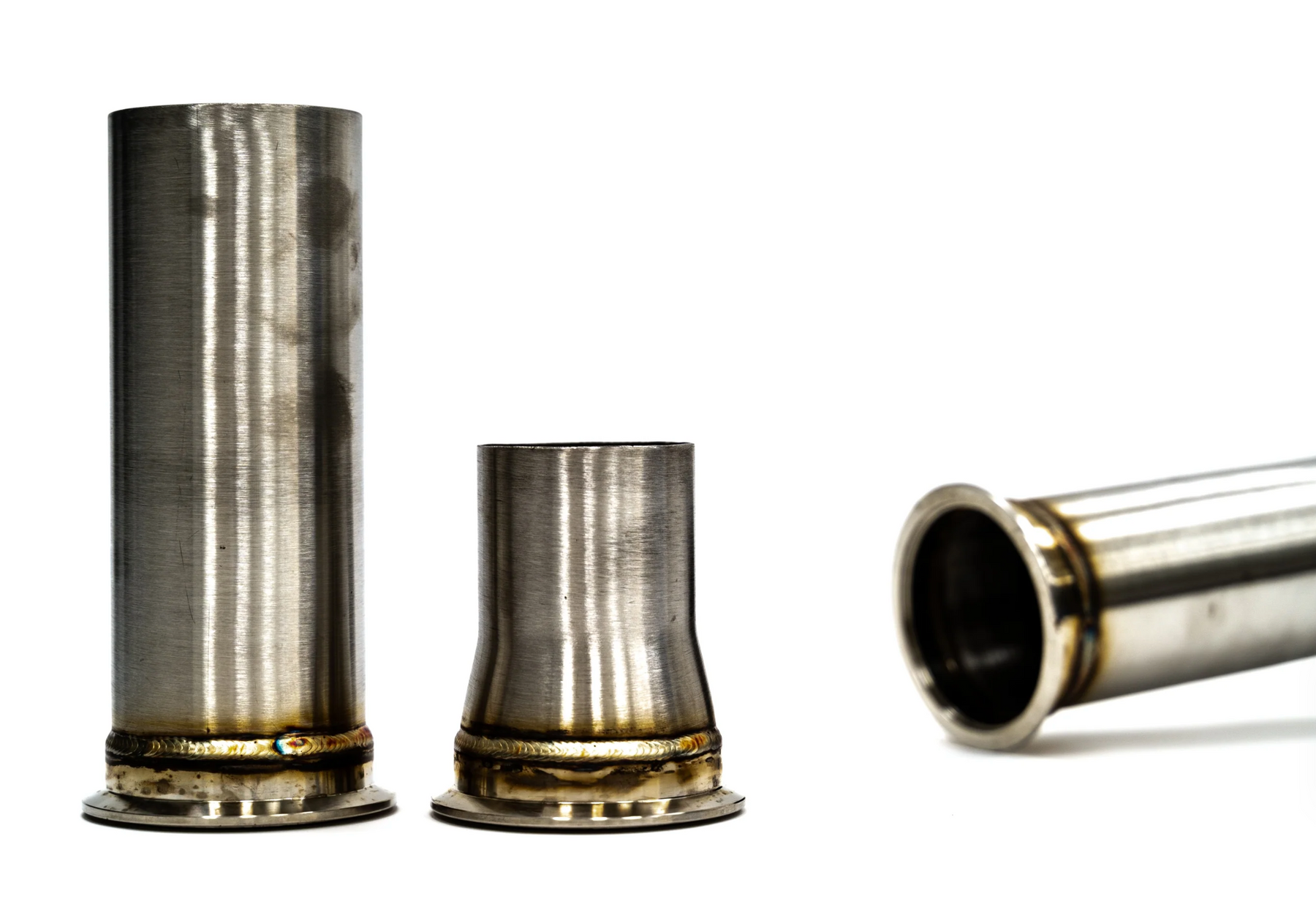 The ARM Audi A3 Downpipe kit comes with both a 2.5" reducer to connect to the stock exhaust system, and a straight 3" adapter to connect to upgraded cat-back exhaust systems. This connection utilizes a CNC machined v-band system for connecting between the downpipe and adapter of your choice. The v-band is a superior connection type compared to a slip-fit or bolt on connection as it maintains a more study and reliable seal between the two ends.