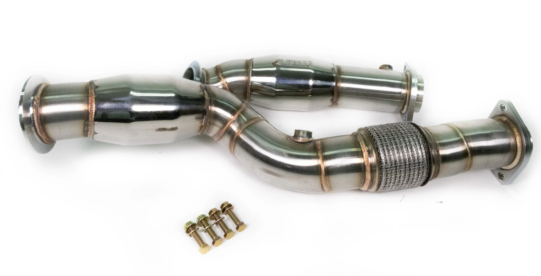 If you select the catted S58 Downpipes, the catalysts will replace the resonators found in the the catless/resonated downpipes. The catted version sounds very similar to the catless variant, but will help with some of the exhaust odor. The catted S58 downpipes will likely still produce a CEL. To remove a CEL you will need a tune or a CEL Delete Kit.