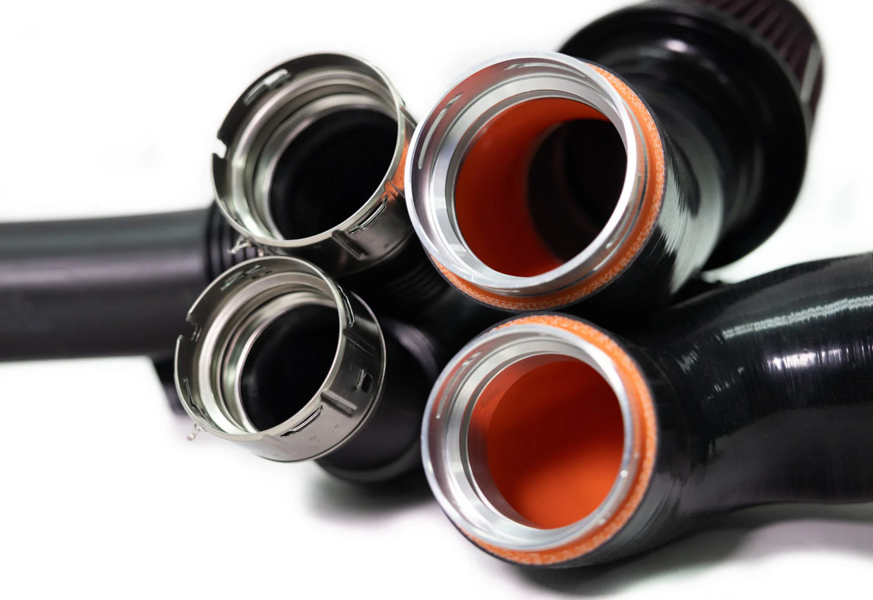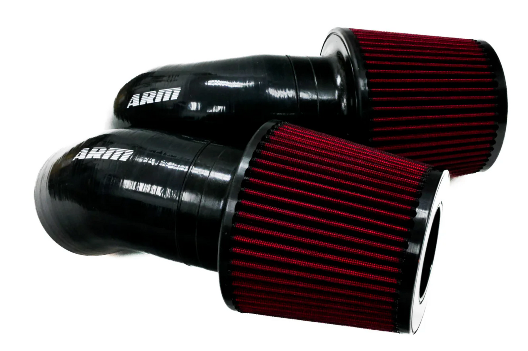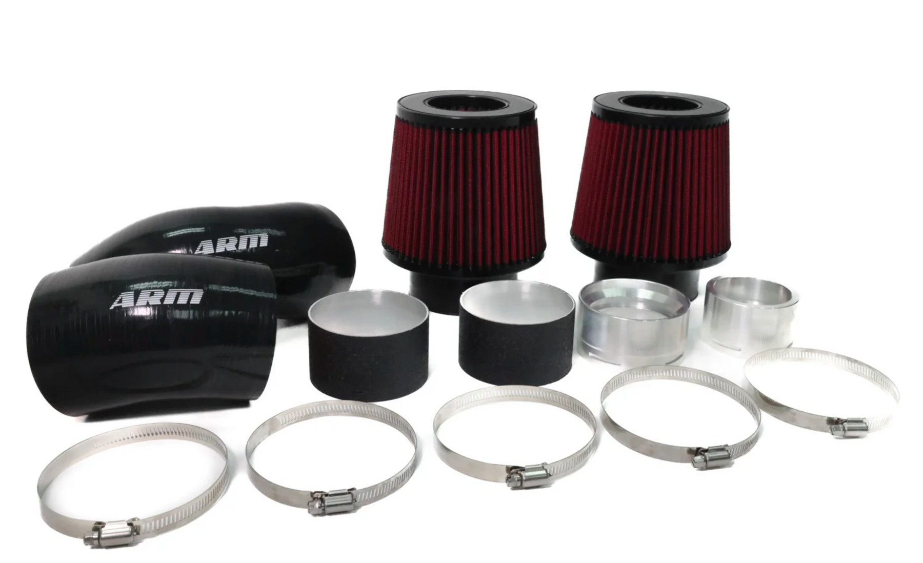 • 2x ARM S58 High-Flow Inverted Air Filters • 2x Inlet Connecting Pipes • 1x Front Turbo Inlet • 1x Rear Turbo Inlet • 1x Front Turbo Adapter • 1x Rear Turbo Adapter • 8x Clamps