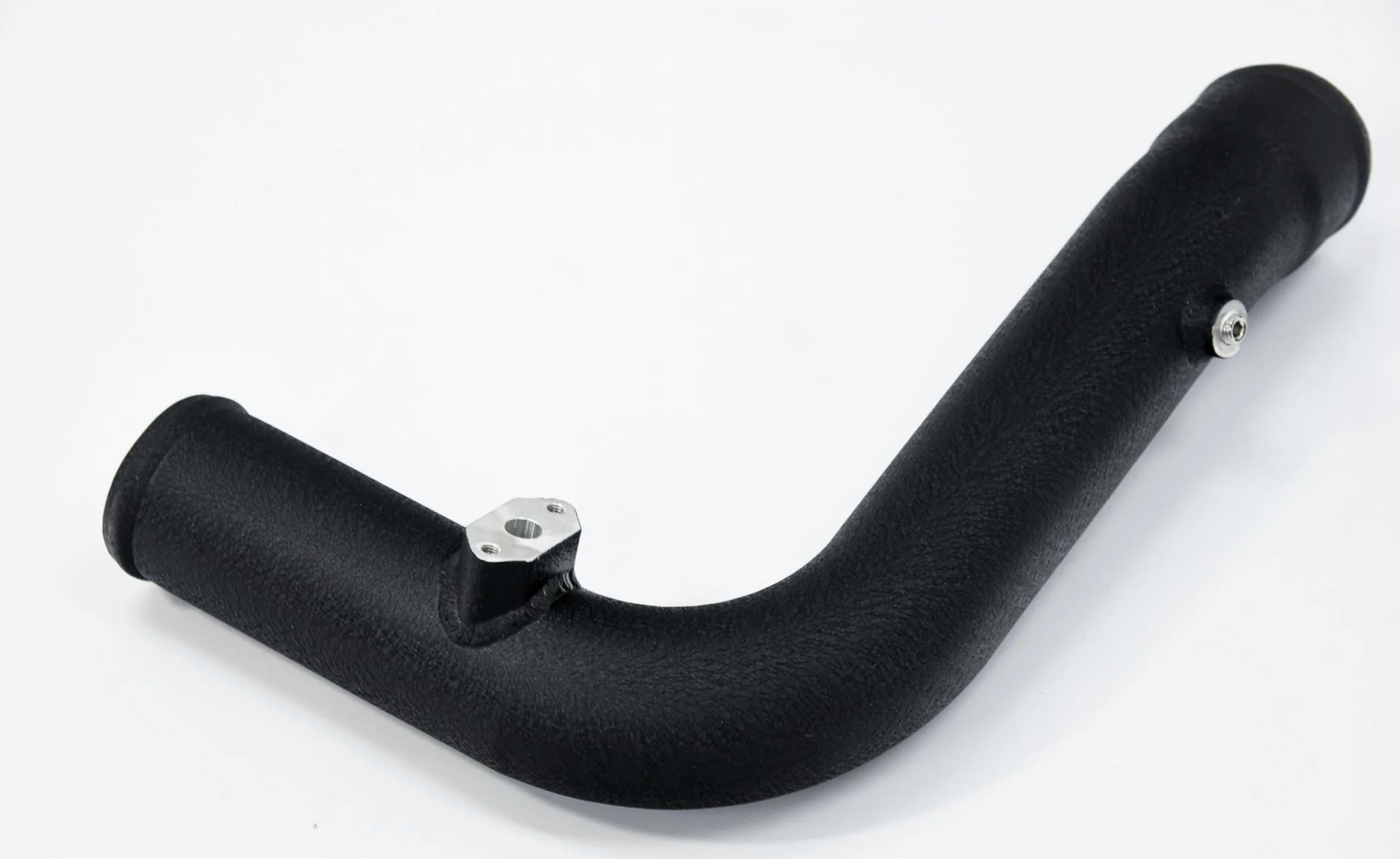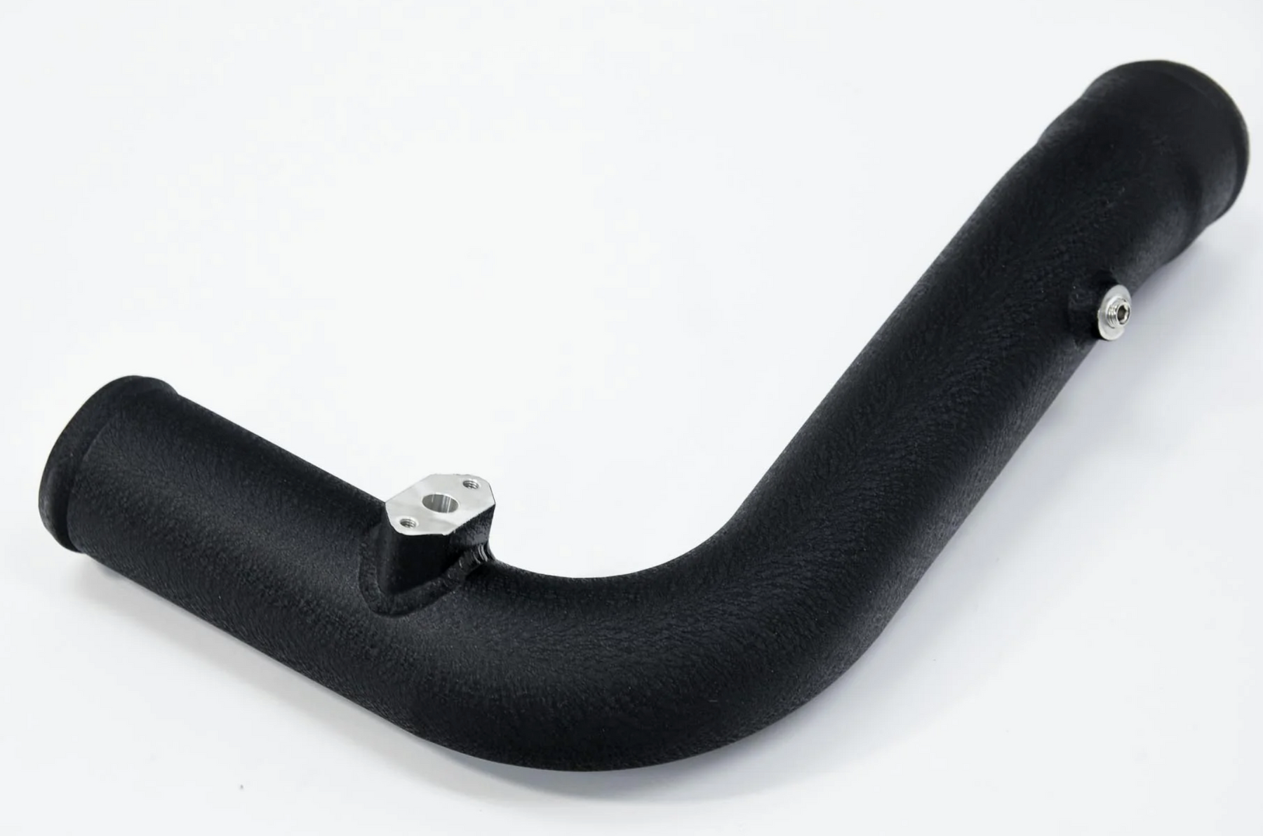 This second section of piping has an integrated 1/8" NPT port for methanol or nitrous injection in the ideal location, after the intercooler but before the throttle body.