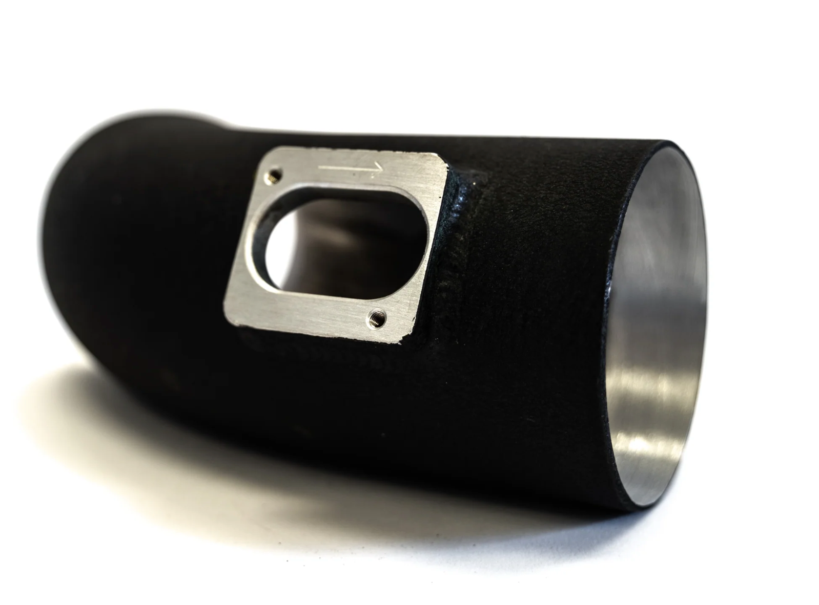 While the driver-side intake runner maintains the 3.5" inside diameter all the way until it reaches the stock turbo inlet and overlaps it, making the stock inlet pipe the lowest common denominator in the intake system.  The ARM S55 Intake driver side runner is larger than even the upgraded Pure Turbos turbo inlet.