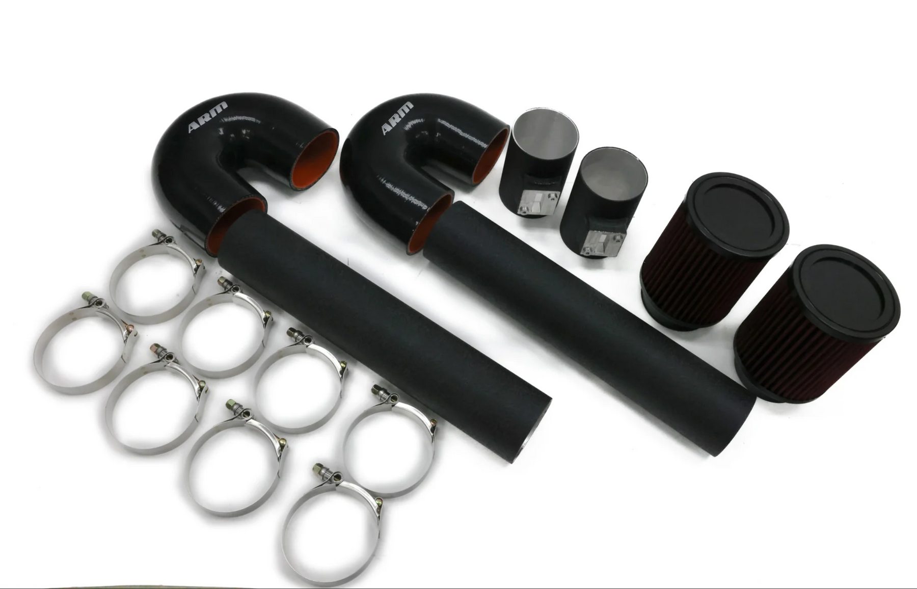 With either setup, the standard filter location or the Front Facing Upgrade, you will receive the ARM Dry Filters. The ARM Dry Air Filters included in the kit are made of high quality multimedia material designed to allow maximum airflow to your engine while providing effective filtration. These filters are engineered with multiple layers of filtration media, including a high-flowing synthetic fiber layer that captures even the smallest particles, while allowing for maximum airflow to the engine. The ARM Dry Filters help to ensure that your engine has the most airflow available while being protected from harmful contaminants.