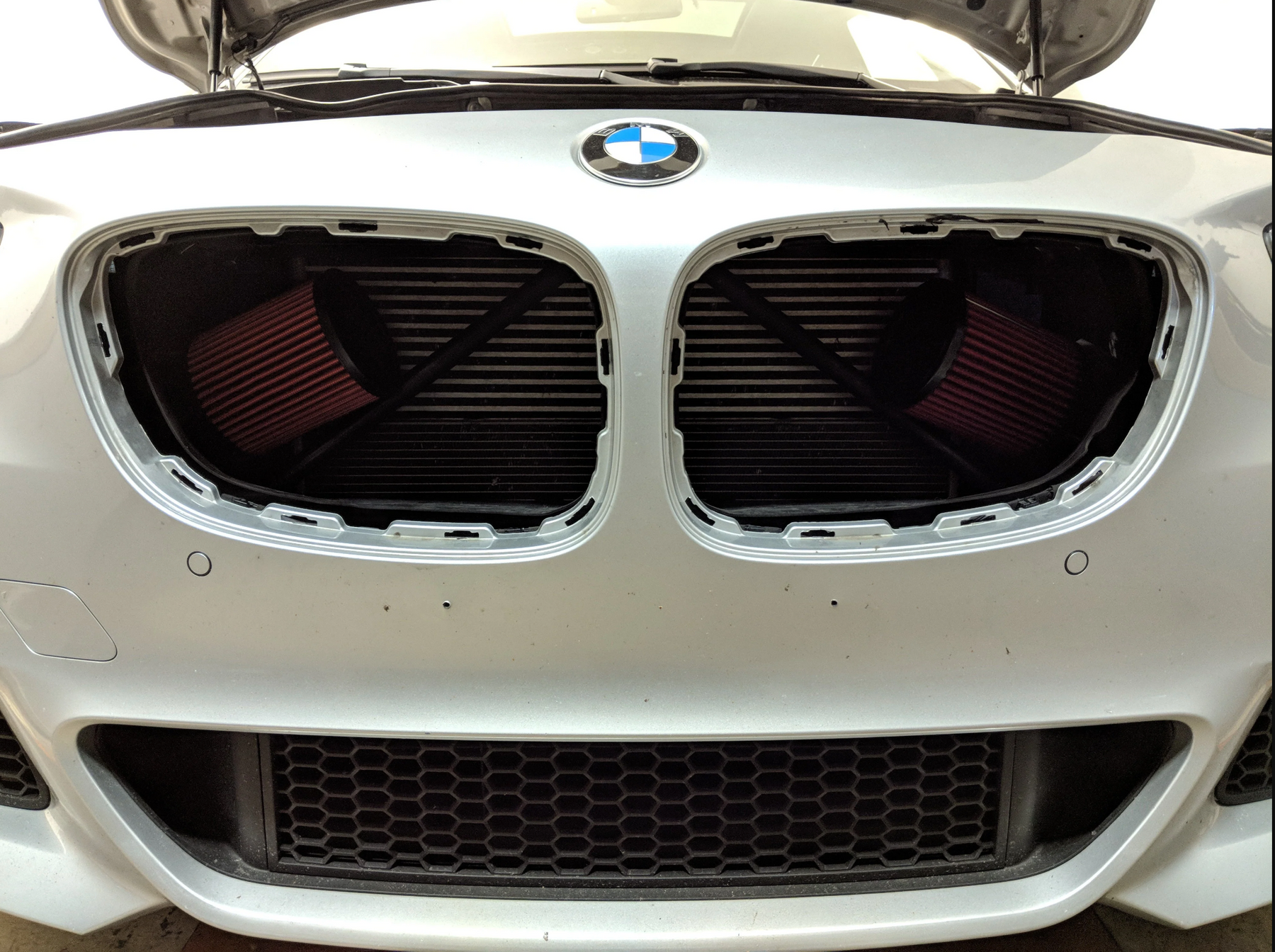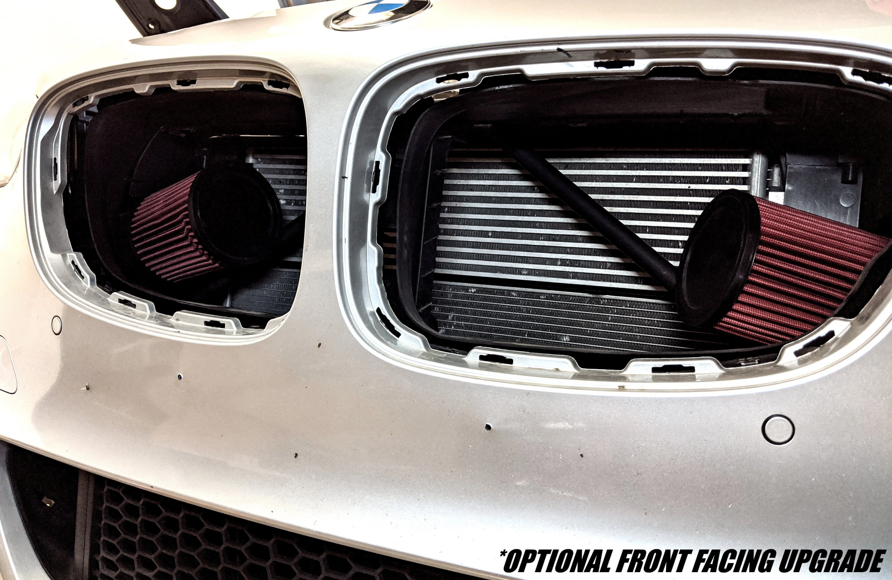 The ARM N63R Intake is available with an optional Front Facing Upgrade which relocates the filters from the engine bay, to behind the front grille. This option allows your N63R to draw in cooler air than the engine bay setup can offer. The optional Front Facing Upgrade is the ideal setup for your N63R if you're looking to maximize power. The Front Facing Upgrade involves removing the factory active grille system if your vehicle is equipped with it.