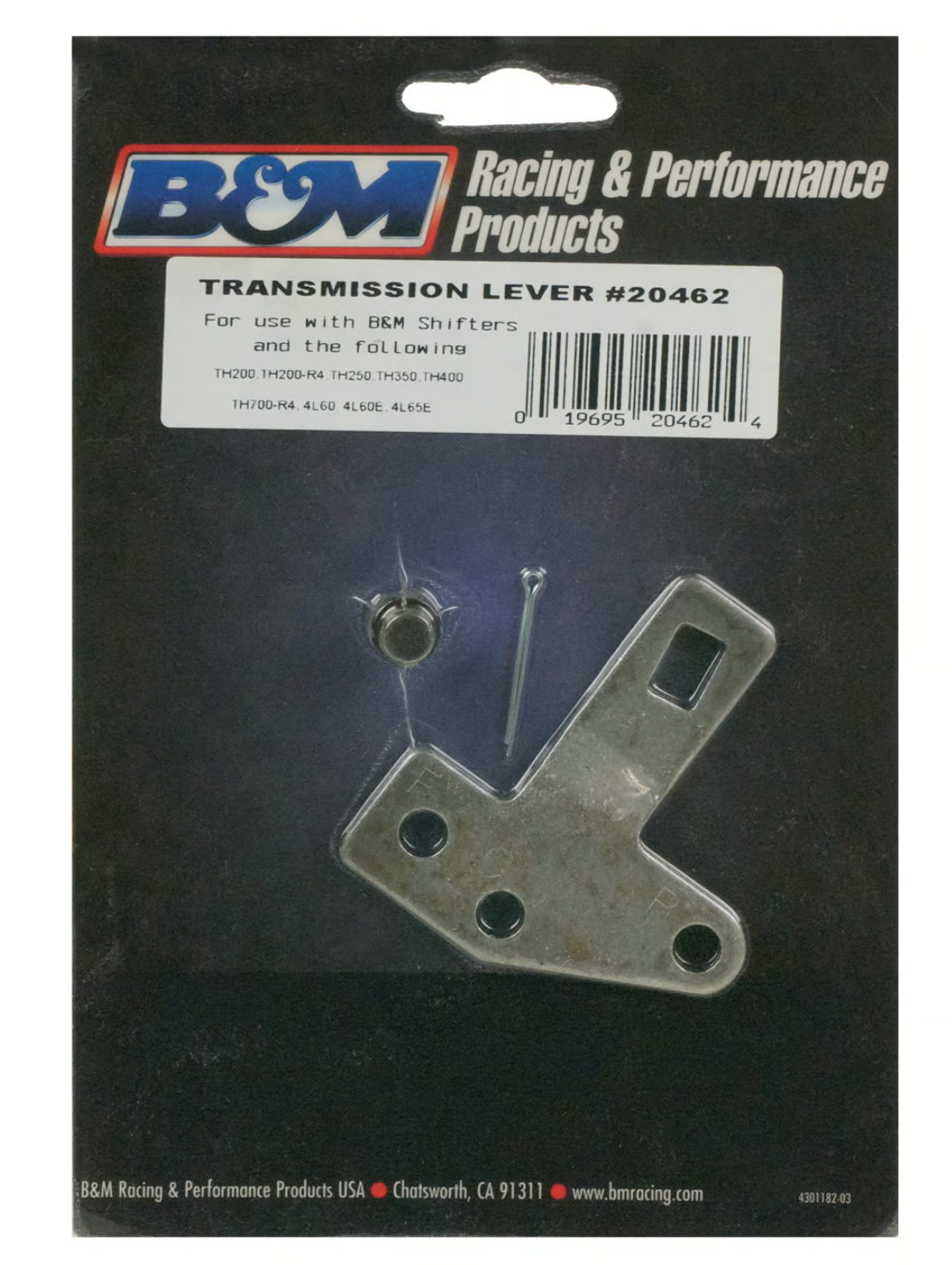 B&M Transmission Shift Lever for GM TH400, 350, 250, 200, 700R4, 2004R, 4L60E and 4L80E automatic transmissions.